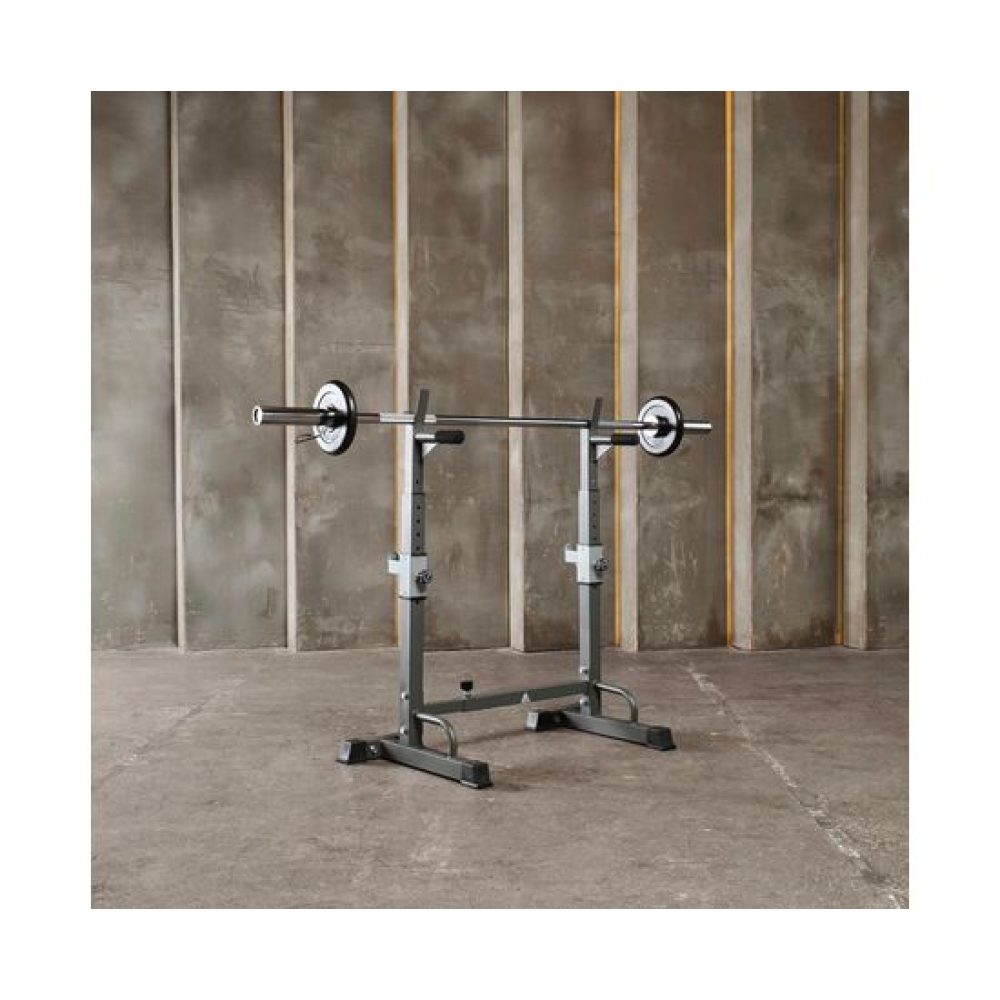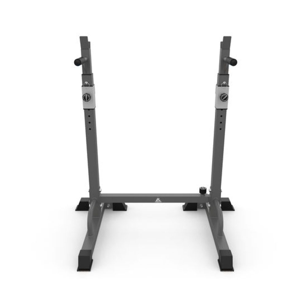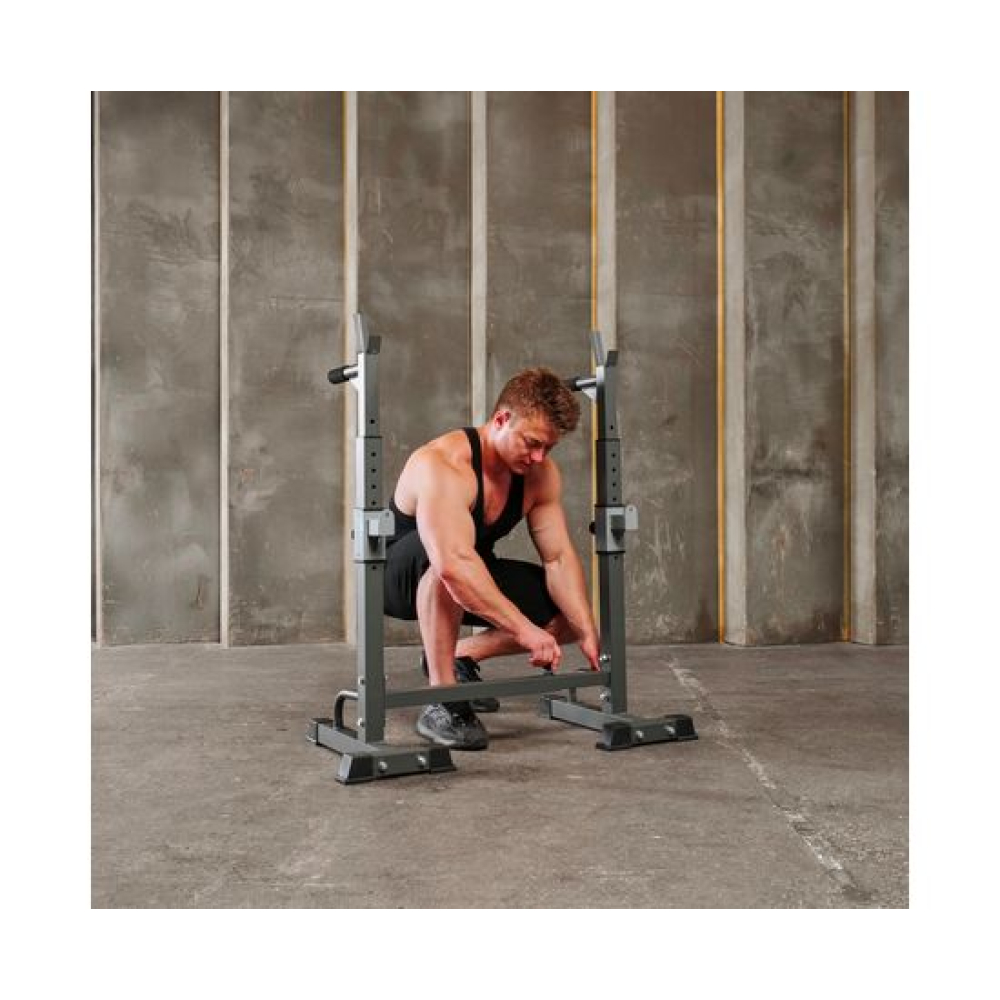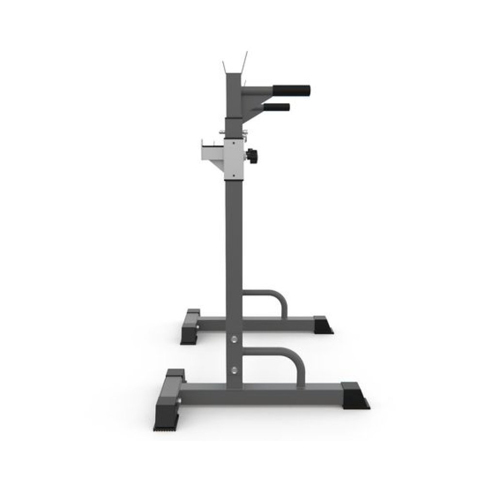 Многофункциональная стойка для домашнего спортзала. Подходит для выполнения полного спектра упражнений со штангой: от приседания и становой тяги до жима лежа. Приятное дополнение – стойки для отжиманий от пола.Устойчивое основание из высокопрочной профильной трубы выдерживает нагрузку до 100 кг. Подвижный держатель подойдет для весов до 50 кг.Высота брусьев и ширина стойки легко регулируется без дополнительных инструментов. 12 уровней на верхних ручках и 8 уровней - на нижних. Внутренняя ширина регулируется в диапазоне от 54 до 99 см.