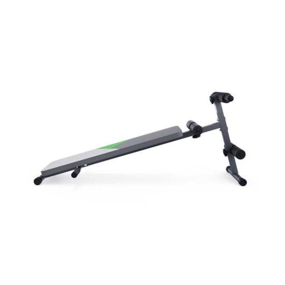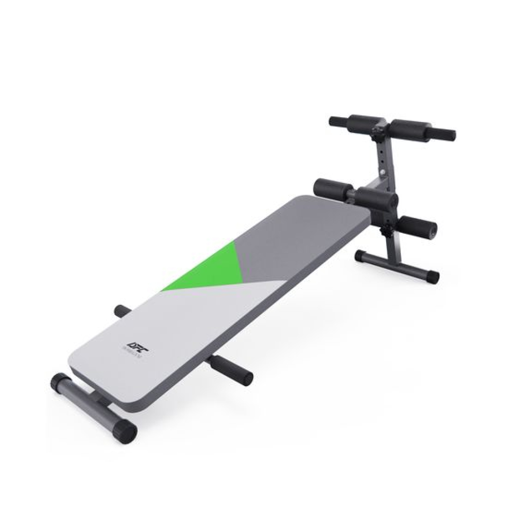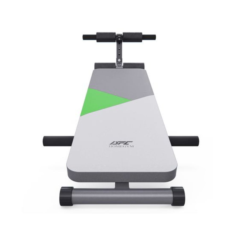 Скамья для пресса DFC DB127/2 с зеленым рисунком – надежный тренажер для домашних тренировок! Эта скамья спортивная сочетает в себе прочность, функциональность и удобство.Стальная рама из профиля 38 х 38 х 1,2 мм гарантирует прочность и устойчивость даже при интенсивных нагрузках. Максимальный вес пользователя составляет 120 кг, что делает скамью подходящей для большинства пользователей.5 уровней регулировки угла наклона скамьи для жима позволяют менять нагрузку и эффективно прорабатывать разные группы мышц. Вы можете выполнять подъемы корпуса для прокачки пресса, подъемы ног для нижнего отдела живота, а также использовать скамью для упражнений с гантелями. Эргономичные регулируемые валики из вспененного материала обеспечивают комфорт во время тренировки. Нижние валики регулируются на 4 уровня, что позволяет надежно фиксировать стопы. Дополнительные удобства включают стойку для отжиманий и упоры, расширяющие спектр упражнений.Кор-доска отличается устойчивостью благодаря прорезиненным ножкам, которые защищают пол от царапин и предотвращают скольжение. Обивка выполнена из водонепроницаемой экокожи, что облегчает уход за тренажером.