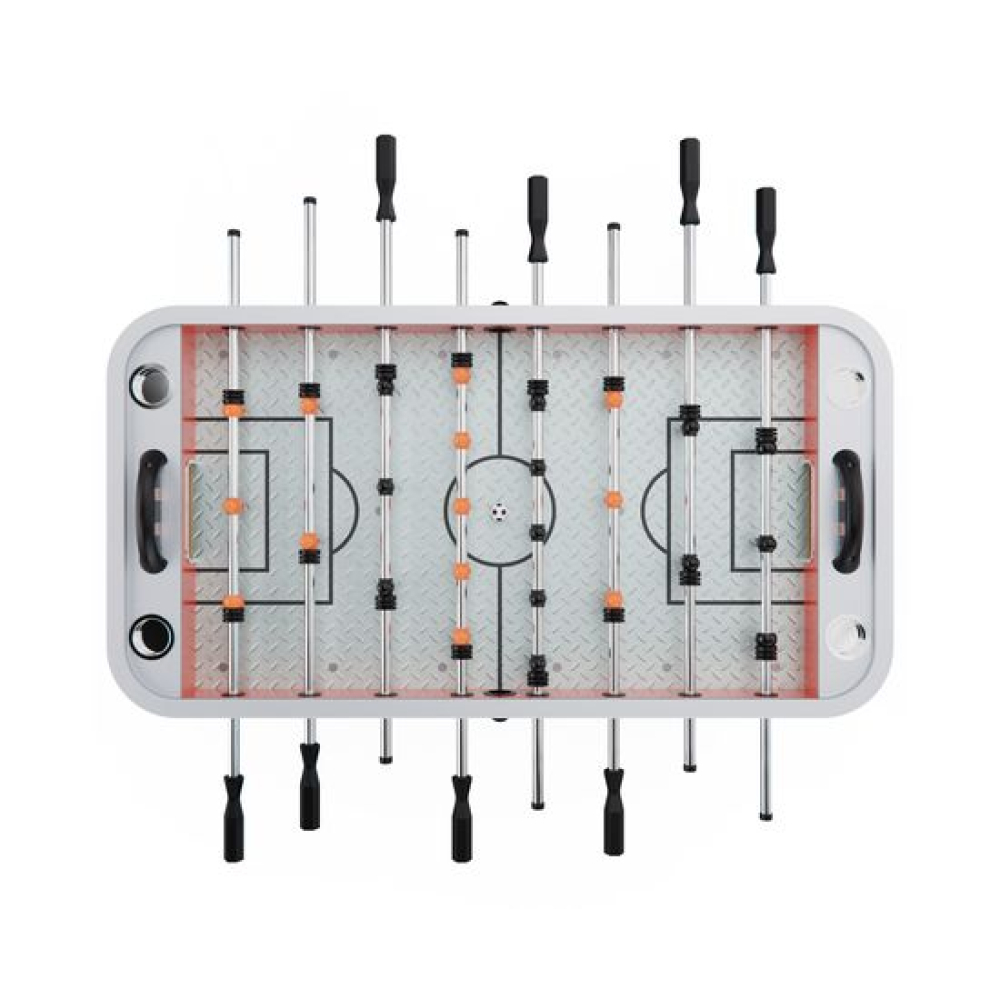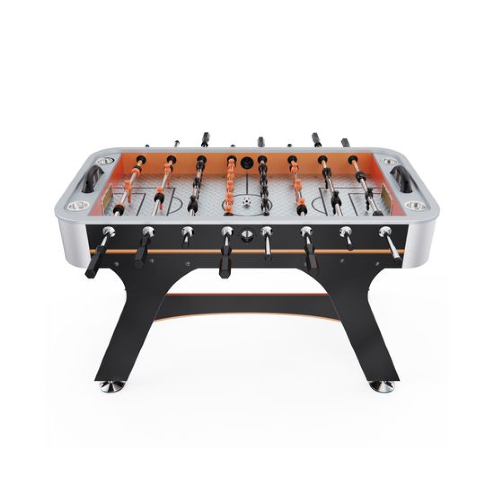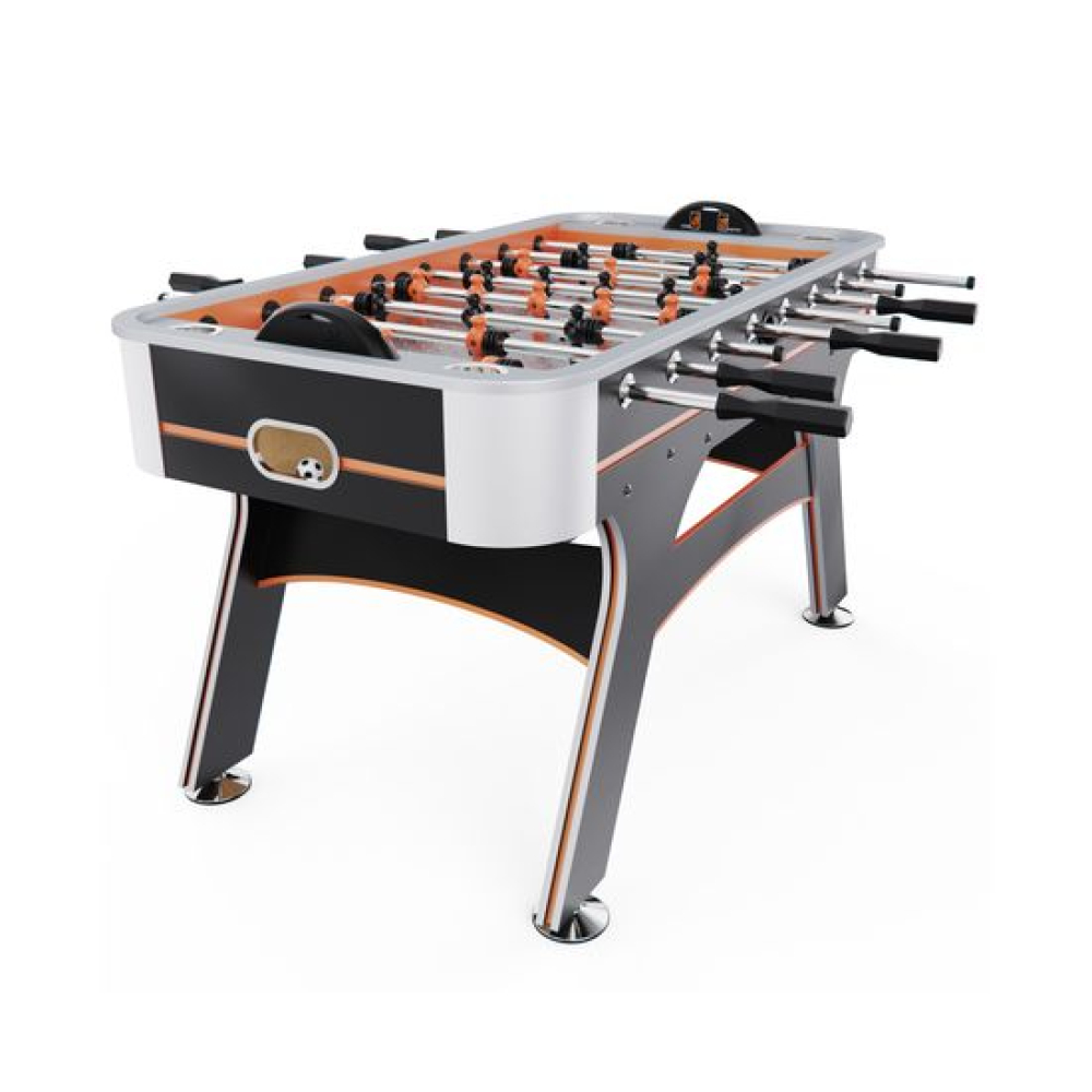Игровой стол - футбол DFC ST-05 — это полноценный настольный футбол, созданный для ярких семейных баталий, дружеских матчей и активного отдыха дома. Модель подойдёт как для детей, так и для взрослых, обеспечивая весёлое и азартное времяпрепровождение в любое время года.Размер стола — 144 х 76 х 87 см, а игровое поле — 118 х 68 см. Такая площадь оптимальна для маневров, точных ударов и зрелищной игры. Размер мячей — 36 мм, что соответствует стандарту для настольного футбола и обеспечивает отличную управляемость.Корпус стола выполнен из прочного МДФ, устойчивого к нагрузкам и износу. Толщина игрового поля составляет 9 мм, а бортиков — 1,2 см, что обеспечивает отличную прочность и долговечность. Высота ножек 62 см создаёт оптимальное положение для комфортной игры. Вес стола 60 кг делает его устойчивым даже во время самых активных матчей.В комплект входят 2 электронных счётчика, работающих от батареек (требуется 6 батареек типа AAA, входят в комплект), а также 2 мяча. Цифровые табло автоматически отображают очки, делая игру ещё реалистичнее и азартнее. Вам не придётся отвлекаться — всё под контролем!На корпусе предусмотрены 4 подстаканника, чтобы любимые напитки были всегда под рукой во время игры. А компенсаторы неровности пола позволяют установить стол ровно даже на слегка неидеальной поверхности.Игровой стол DFC ST-05 — это не просто настольный футбол, а полноценный домашний игровой центр, который подойдёт для детской комнаты, игровой зоны или загородного дома. Идеальное решение для семейных вечеров, праздников и встреч с друзьями.