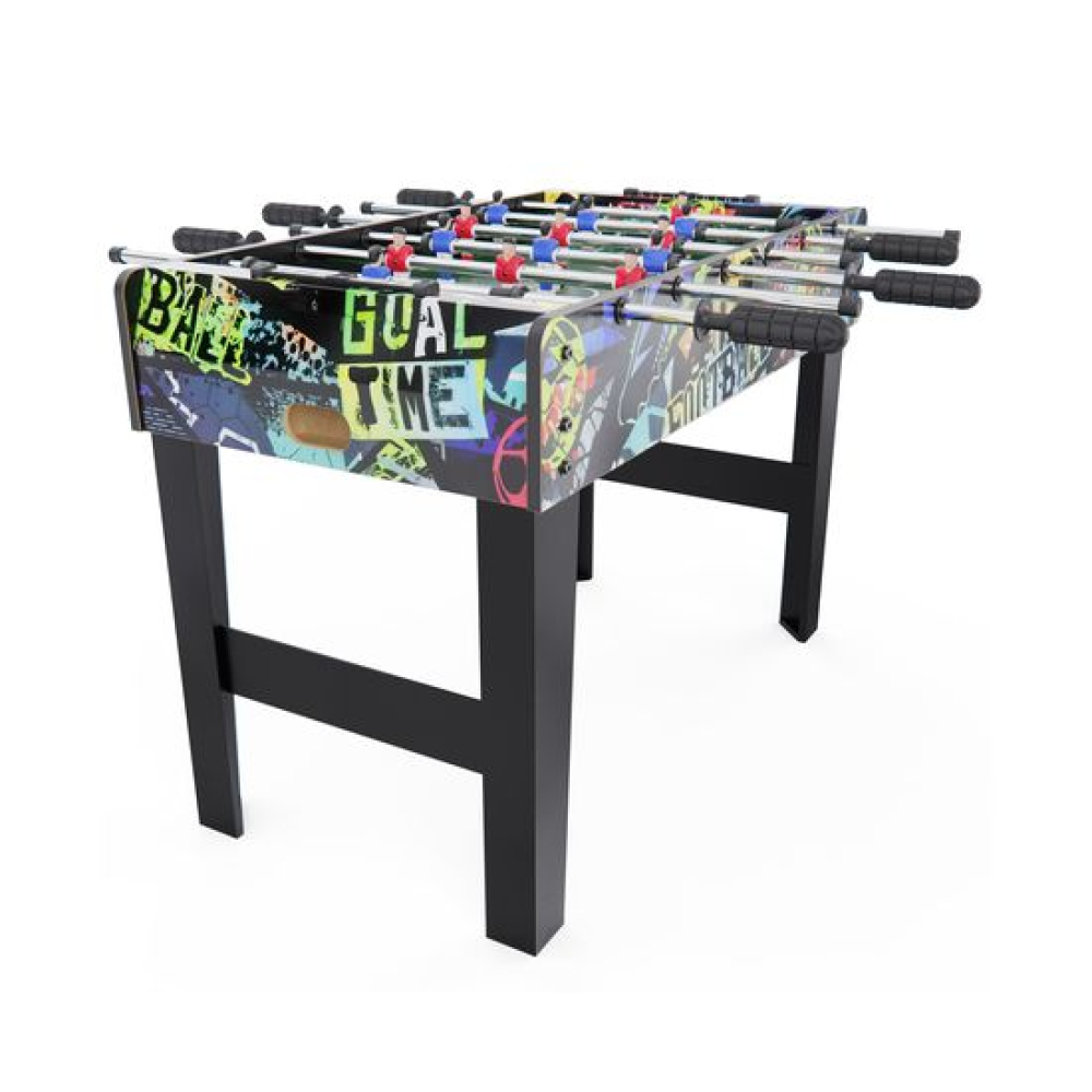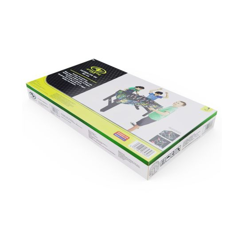 Игровой стол – футбол ( кикер ) DFC Athletic 36" 96 x 53 см подходит для домашних развлечений. Благодаря оптимальным габаритам, стол легко впишется даже в небольшое помещение, не занимая много места.Технические характеристики: Габаритные размеры: 92 x 51 x 66 см Размеры упаковки: 96 x 53 x 10,7 см Игровое поле: 76,6 x 48,4 см Высота ножек: 56 см Прочная конструкцияМатериалы премиум-класса: Каркас и поле из высококачественного МДФ Покрытие из прочного ПВХ Декоративное оформление бумагой Толщина игрового поля: 3 мм Борта высотой 14,8 см и толщиной 12 ммКомплектацияВсё для начала игры: Два футбольных мяча диаметром 32 мм Полные команды игроков: 7 красных и 7 синих фигурок Два механических счётчика голов для точного учёта результатовПреимущества модели Прочность конструкции: надёжные материалы обеспечивают длительный срок службы Удобство использования: оптимальная высота стола для комфортной игры Компактность: легко помещается в небольших помещениях Надёжная фиксация: устойчивые ножки обеспечивают стабильность во время игрыПодарите себе и близким незабываемые моменты азарта и веселья с нашим футбольным столом! Идеальное решение для домашних развлечений и дружеских турниров.