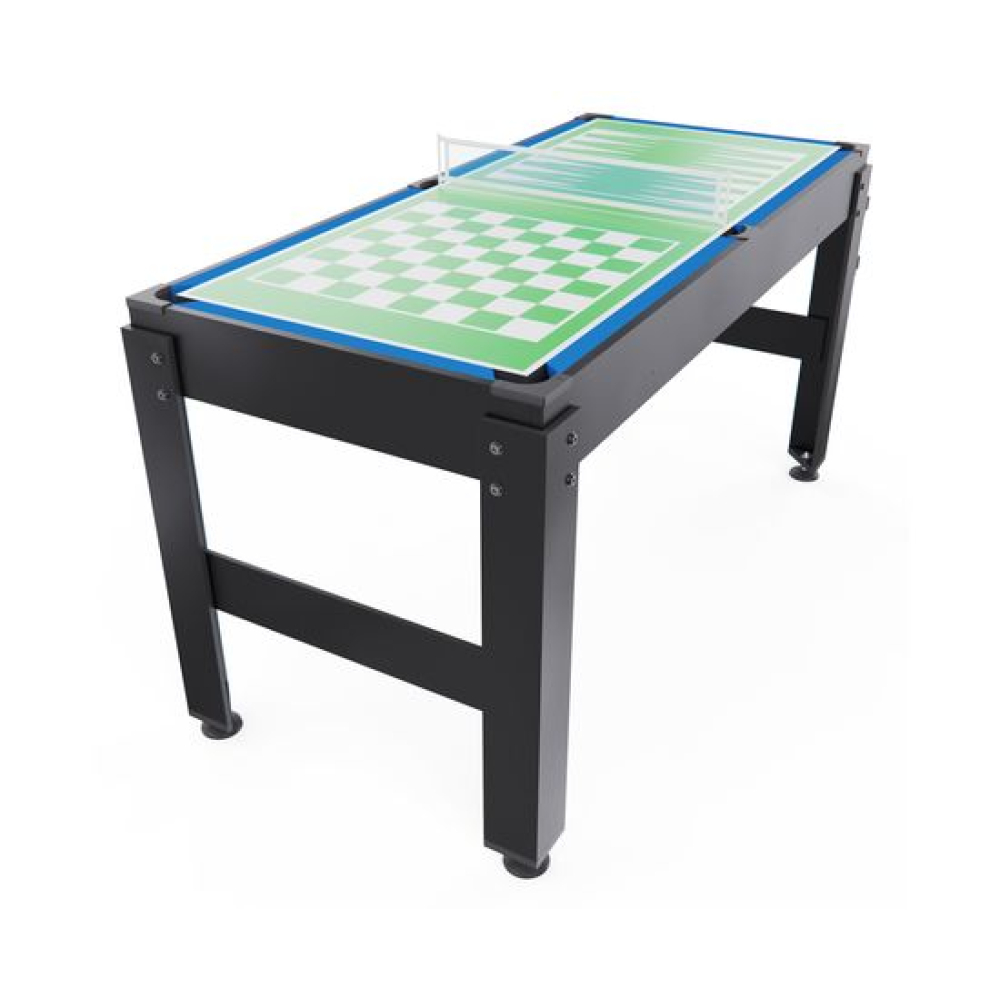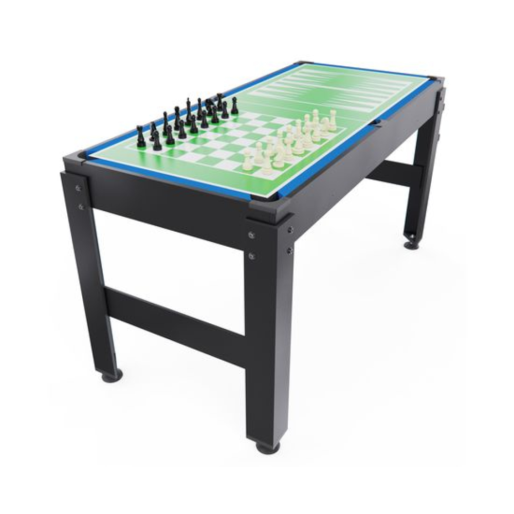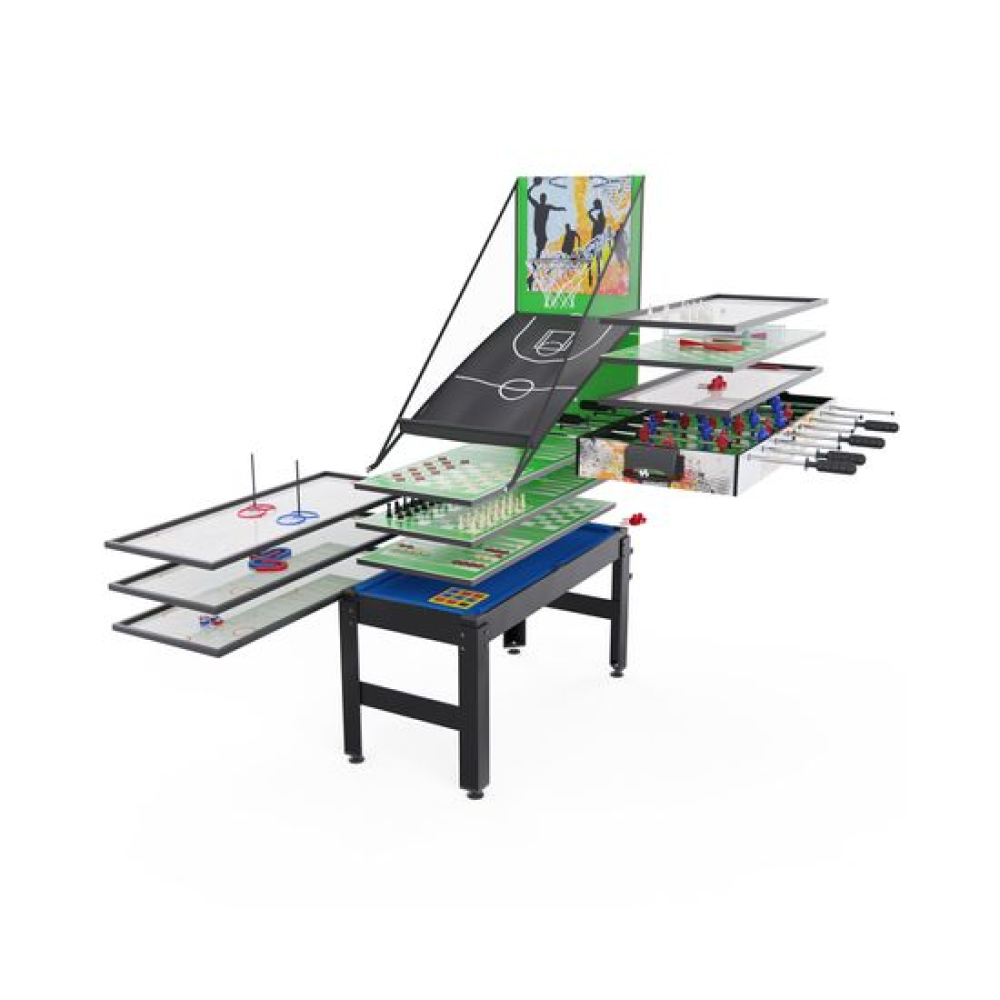 Игровой стол-трансформер 14 в 1 DFC 48".Универсальное развлечение для всей семьи.Многофункциональный игровой центр представляет собой уникальное решение для организации активного досуга в домашних условиях. Компактный стол-трансформер объединил в себе 15 различных игровых поверхностей, способных увлечь как детей, так и взрослых.Основные характеристики Размер стола: 122 x 61 см Количество игр: 15 различных игровых поверхностей Материал: Высококачественный износостойкий пластик Конструкция: Трансформируемая игровая поверхностьРазнообразие развлеченийВ одном устройстве собраны самые популярные настольные игры и спортивные симуляторы:Классические настольные игры: Шахматы Шашки Крестики-ноликиСпортивные симуляторы: Настольный теннис Мини-баскетбол Футбол Хоккей Бильярд БоулингУникальные игровые механики: Игра «Подкова» Магнитные шайбы «Кольцо»Преимущества моделиКомпактность: Не занимает много места при храненииУниверсальность: Подходит для игроков любого возрастаРазвивающий эффект: Способствует развитию логики, координации и стратегического мышленияДолговечность: Прочная конструкция рассчитана на длительное использованиеСемейный досуг: Идеальное решение для совместного времяпрепровожденияПодарите себе и своим близким незабываемые моменты радости и веселья с игровым столом-трансформером 15 в 1!Размер игрового поляФутбол: 104x58 смХоккей: 93x47 смПинг-понг: 96x50 смБильярд: 96x50 ммФутбол: Диам. 32 ммБильярд: Диам. 32 ммБаскетбол: Диам. 13 смРазмер коробки 112х66х14,5 смВес нетто: 21,50 кгВес брутто: 24,60 кг