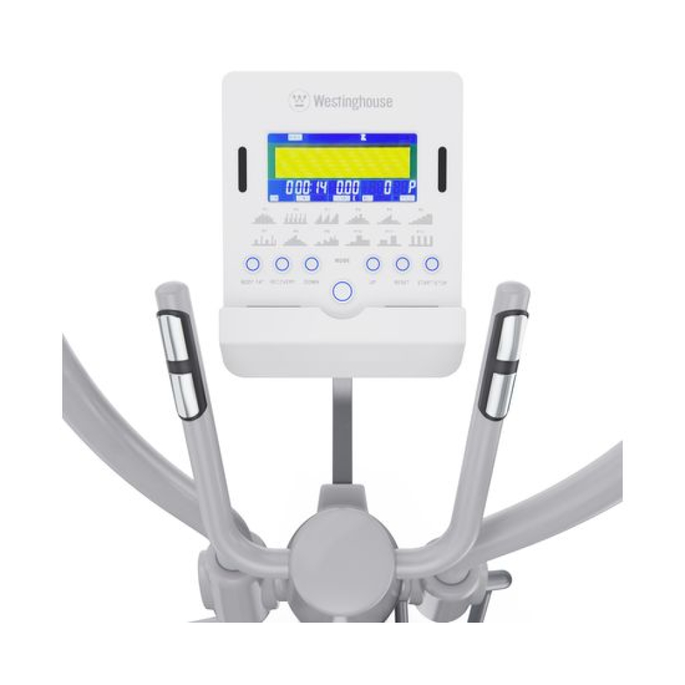 Эллиптический тренажёр DFC Westinghouse E-WE13Y-WH белого цвета — это мощный и удобный кардио тренажёр, созданный специально для домашнего использования. Он обеспечивает полноценную аэробную нагрузку на все группы мышц без ударной нагрузки на суставы, помогает сжигать калории, развивать выносливость и улучшать сердечно-сосудистую систему.Модель способна выдержать пользователя весом до 120 кг. Тренажёр оснащён электромагнитной системой нагрузки, которая обеспечивает максимально точную и бесшумную регулировку сопротивления. Регулировка наклона и электронная регулировка сопротивления с 32 уровнями позволяют точно настраивать интенсивность тренировки, а увеличенный инерционный вес маховика 15 кг способствует плавной и стабильной работе тренажёра, создавая комфортные условия для длительных и эффективных тренировок.Нескользящие педали обеспечивают отличное сцепление даже при интенсивных занятиях. Они просторные, устойчивые и предотвращают проскальзывание стоп, обеспечивая дополнительную безопасность. Длина шага составляет 50,8 см, что позволяет комфортно тренироваться как высоким, так и невысоким пользователям, делая движение естественным и эффективным.Все данные отображаются на LCD-дисплее, где вы можете отслеживать ключевые параметры: время, дистанция, калории, пульс, мощность, скорость и темп. Для удобного отслеживания за состоянием организма во время тренировки на поручнях установлены сенсорные датчики пульса. Так же в дисплей встроено 12 программ + ручной, целевой, пользовательский режим, восстановления пульса и оценка ИМТ.Для устойчивости тренажёр оснащён компенсаторами неровности пола, благодаря которым он надёжно стоит даже на неидеальной поверхности. Встроенные транспортировочные ролики позволяют легко переместить тренажёр с места на место, что особенно удобно при использовании в ограниченном пространстве.Эллиптический тренажёр DFC Westinghouse E-WE13Y-WH — это оптимальное сочетание надёжности, комфорта и функциональности. Тренажёр продуман до мелочей: есть держатель для бутылки, чтобы вода всегда была под рукой, и держатель для планшета или телефона, позволяющий смотреть видео или слушать музыку во время тренировки.Гарантия на детали подверженные естественному износу в процессе эксплуатации — до 6 месяцев с момента установки тренажера при условии регулярного планового ТО. Важно: гарантия не распространяется на преждевременный износ из-за чрезмерной эксплуатации тренажера.
