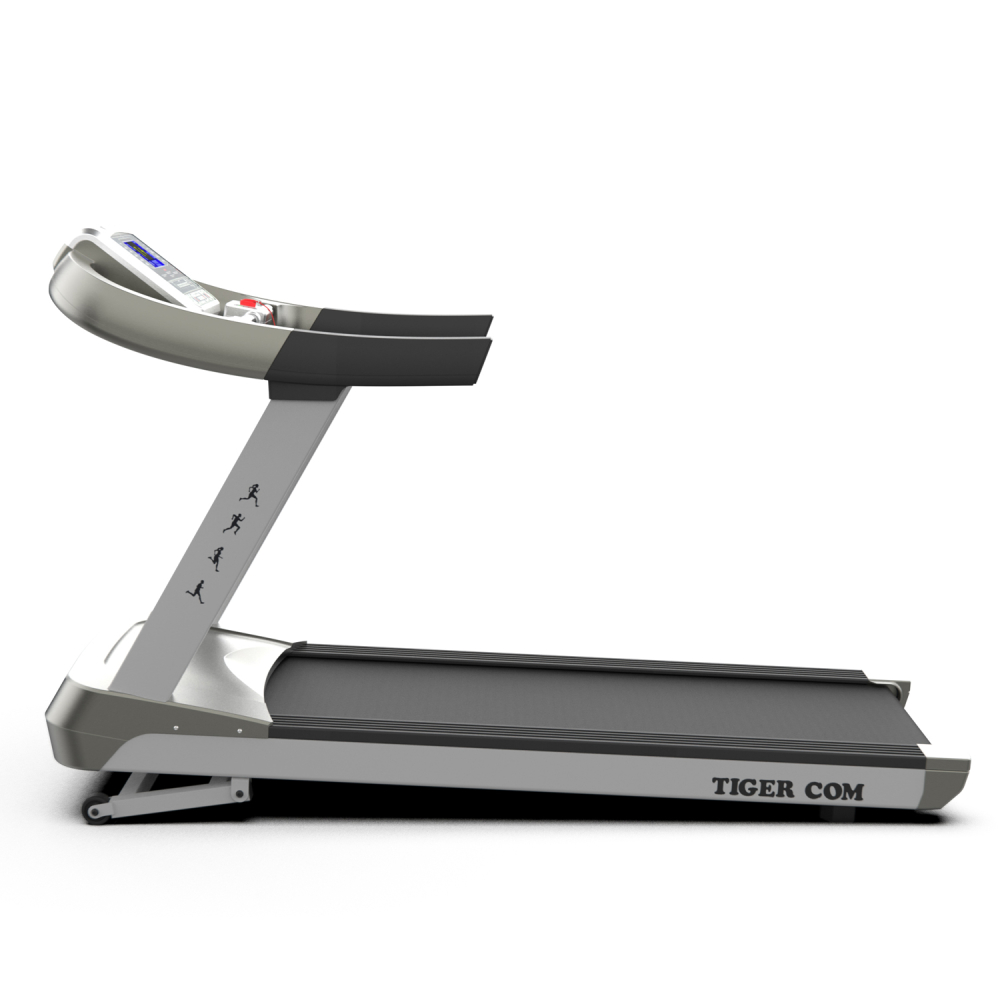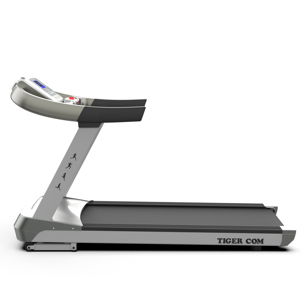 Электрическая беговая дорожка DFC TIGER PRO - улучшенная версия TIGER, отличающаяся более мощным двигателем переменного тока, толщиной полотна и максимальным весом пользователя. Дорожка предназначена для коммерческого использования Двигатель переменного тока мощностью 6 лошадиных сил способен разогнать дорожку от 0,3 до 20 км/ч. Скорость регулируется электронно с консоли с помощью кнопок быстрого запуска, либо постепенно увеличивается с шагом 0,1 км/ч с помощью клавиш около сенсорных датчиков пульса. Наклон тренажёра от 0 до 15° регулируется электронно с консоли. Вы можете выставить желаемый наклон с помощью кнопок быстрого изменения, либо постепенно прибавить или убавить градусы с помощью клавиш. Очень большое беговое полотно размерами 60 х 161 см и толщиной 3 мм, предоставит пользователю максимум комфорта и простора во время бега или ходьбы. Толщина деки 25 мм, дорожка выдерживает пользователей весом до 200 кг. Подойдёт для пользователей ростом до 210 см. 7' ЖК-дисплей отображает: Время, скорость, дистанцию, калории, пульс, угол наклона. 8 программ тренировки. В функционал входят разъемы MP3 и USB, 2 высококачественных динамика для прослушивания музыки или просмотра фильмов и сериалов. Для удобства на консоли расположены кнопки переключения музыки и регулировки звука. С помощью USB-входа пользователь сможет не только подключиться к дорожке для проигрывания медиа-файлов, но и зарядить свой гаджет. На панели есть 2 кармана для бутылки традиционной круглой и квадратной формы - для нестандартной формы ёмкостей, а также подставка под планшет. Сенсорные датчики пульса располагаются прямо под консолью, что упростит переключение программ или скорости во время замера вашего сердечного ритма. Транспортировочные ролики для быстрого перемещения по комнате.