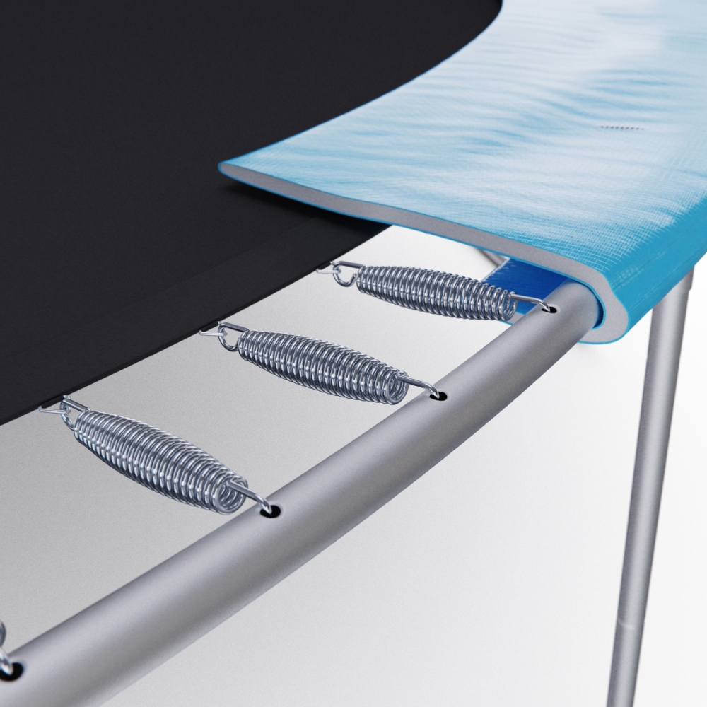 Каркасный батут с внутренней сеткой DFC серии Kondition размером 16 футов станет центром внимания для всех членов семьи и друзей! Одним из главных преимуществ данного батута является его прочная и надежная защитная сетка, которая обеспечивает безопасность. Её высота составляет 180 сантиметров, что позволяет не беспокоиться о возможности выпасть за пределы батута. Таким образом, даже самые маленькие гости смогут наслаждаться прыжками без страха и с полным комфортом. Лестница для батута служит не только для удобства входа и выхода, но и для обеспечения безопасности. С ее помощью можно легко забраться на батут и спуститься с него, не рискуя упасть и получить травму. Каркасная рама батута изготовлена из высокопрочной стали, способной выдерживать большие нагрузки и гарантировать долгий срок службы даже при интенсивном использовании. Прыжковое полотно выполнено из качественного полипропилена, устойчивого к ультрафиолетовому излучению, что делает его идеальным выбором для использования на открытом воздухе. На этом батуте установлено 108 надежных пружин, которые обеспечивают оптимальную жесткость и позволяют прыгать с большой высоты без риска травмы. Пружины диаметром 22 и длиной 178 миллиметров, обеспечивают плавный и мягкий прыжок.