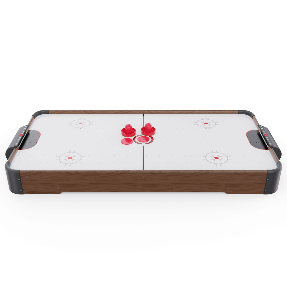 Игровой стол - аэрохоккей DFC AT-400 — это отличное решение для активного досуга всей семьи. Этот настольный аэрохоккей станет отличным подарком для детей и взрослых, развивает реакцию и внимание, объединяет в игре и создает позитивную атмосферу в доме. Игровое поле выполнено из прочного МДФ и имеет габариты 99 х 48 см, что обеспечивает хорошее пространство для динамичных матчей. Толщина бортиков — 9 мм повышает устойчивость и прочность конструкции. Диаметр бит составляет 65 мм, шайб — 55 мм. В комплект входят: 2 шайбы, 2 биты и механические счётчики очков — всё, что нужно для начала игры. Вы сможете устроить настоящий турнир дома или в компании друзей! Игровой стол оснащён вентилятором на 220V, создающим воздушную подушку под шайбой. Это обеспечивает лёгкое и быстрое скольжение по полю, делая игру более захватывающей и реалистичной. Благодаря весу всего 6 кг и размерам 101 х 50,2 х 9,6 см, аэрохоккей DFC AT-400 легко переносить, хранить и устанавливать на любой стол или ровную поверхность. За счёт компактного размера и удобной конструкции, он идеально подходит для домашнего использования, а простая установка позволяет начать игру в любое время.