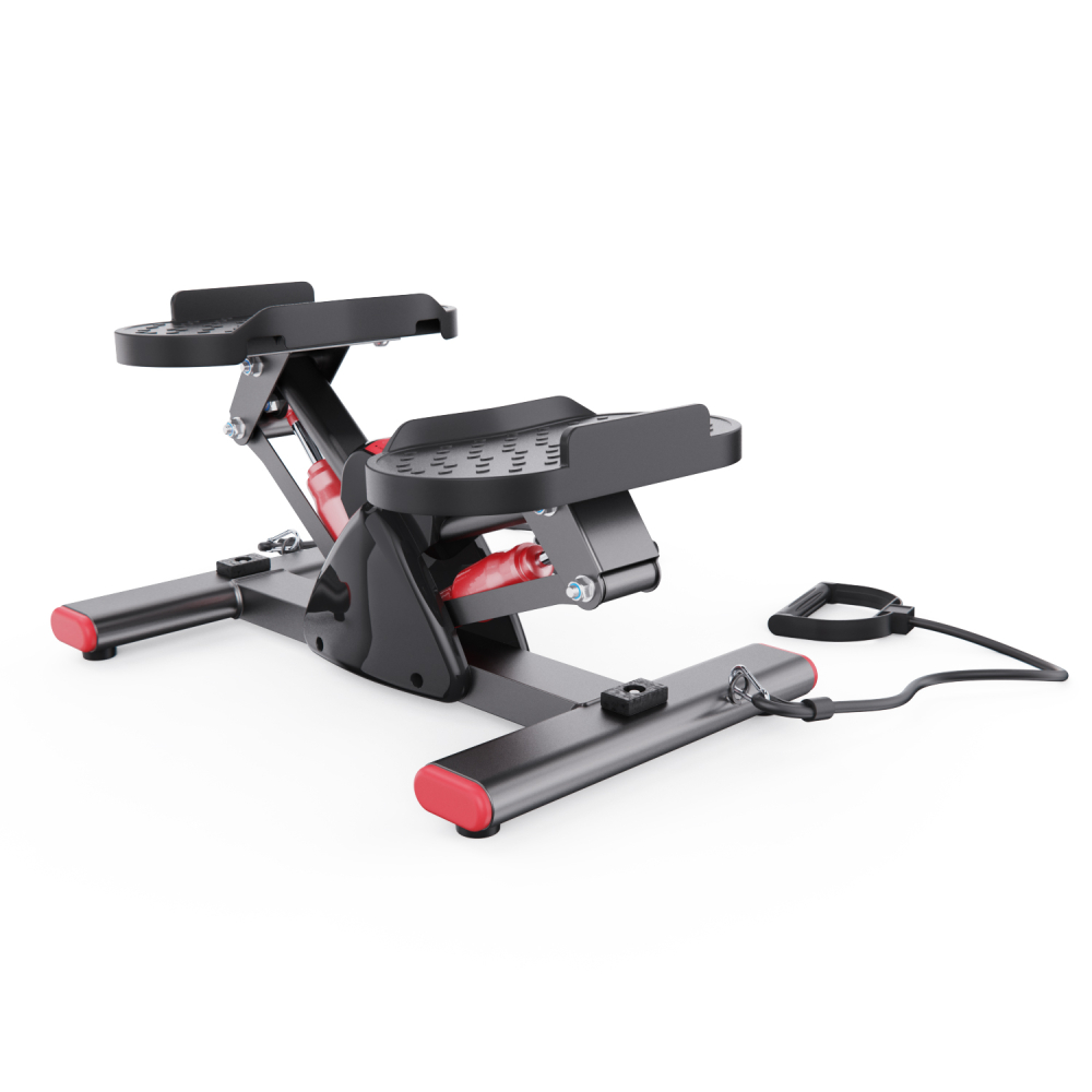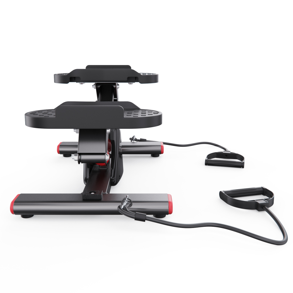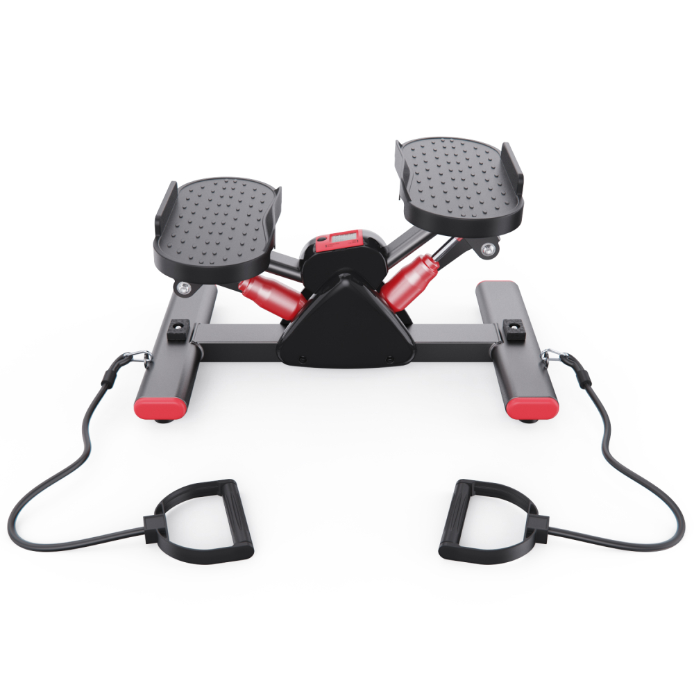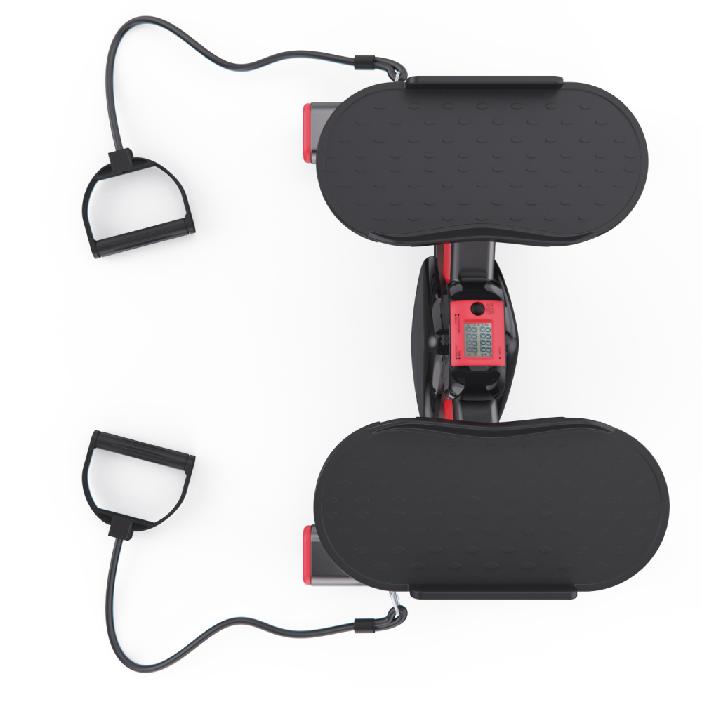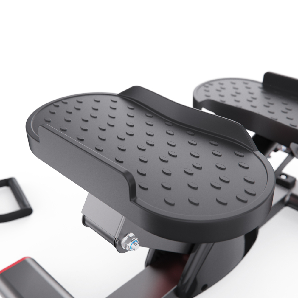Балансировочный степпер с эспандерами DFC SC-S012E красного цвета — идеальный тренажер для ног, который сочетает в себе функциональность, эффективность и стильный дизайн. Этот компактный степпер тренажер для дома позволит вам тренироваться в комфортных условиях, укрепив сердечно-сосудистую систему и проработав основные группы мышц: бедра, икры и верхнюю часть тела. Максимальный вес пользователя для занятий на степпере равен 100 кг. Использование высококачественного гидравлического цилиндра обеспечивает долговечность и минимальный уровень шума во время тренировки. Степер имеет небольшой размер 43,5 х 27,5 х 22,5 см и легко помещается в углу комнаты, что делает его отличным выбором для небольших пространств. Рифленые педали размером 27 x 13 см обеспечивают надежное сцепление с обувью и предотвращают скольжение во время упражнений, обеспечивая безопасность. Оптимальное расстояние между педалями 17 см обеспечивает естественное положение ног во время тренировок, что способствует правильной биомеханике движений. Это минимизирует нагрузку на суставы, позволяя избежать чрезмерного напряжения в стопах и голенях. Степпер тренажер оснащен монохромным LCD дисплеем, который отображает ключевые параметры во время тренировки: время, калории, количество шагов , количество шагов в минуту и режим сканирования. Для работы дисплея потребуется 1 батарейка LR44 (в комплекте). В комплекте идут эспандеры 70,5 см для одновременной проработки нижней и верхней части тела, что делает тренировки более разнообразными и эффективными. Резиновые накладки на нижней части министеппера предотвращают скольжение и повышают устойчивость, добавляя уверенности при выполнении упражнений. Балансировочный мини степпер тренажер DFC SC-S012E — это универсальный тренажер для похудения, который станет отличным помощником в поддержании физической формы!