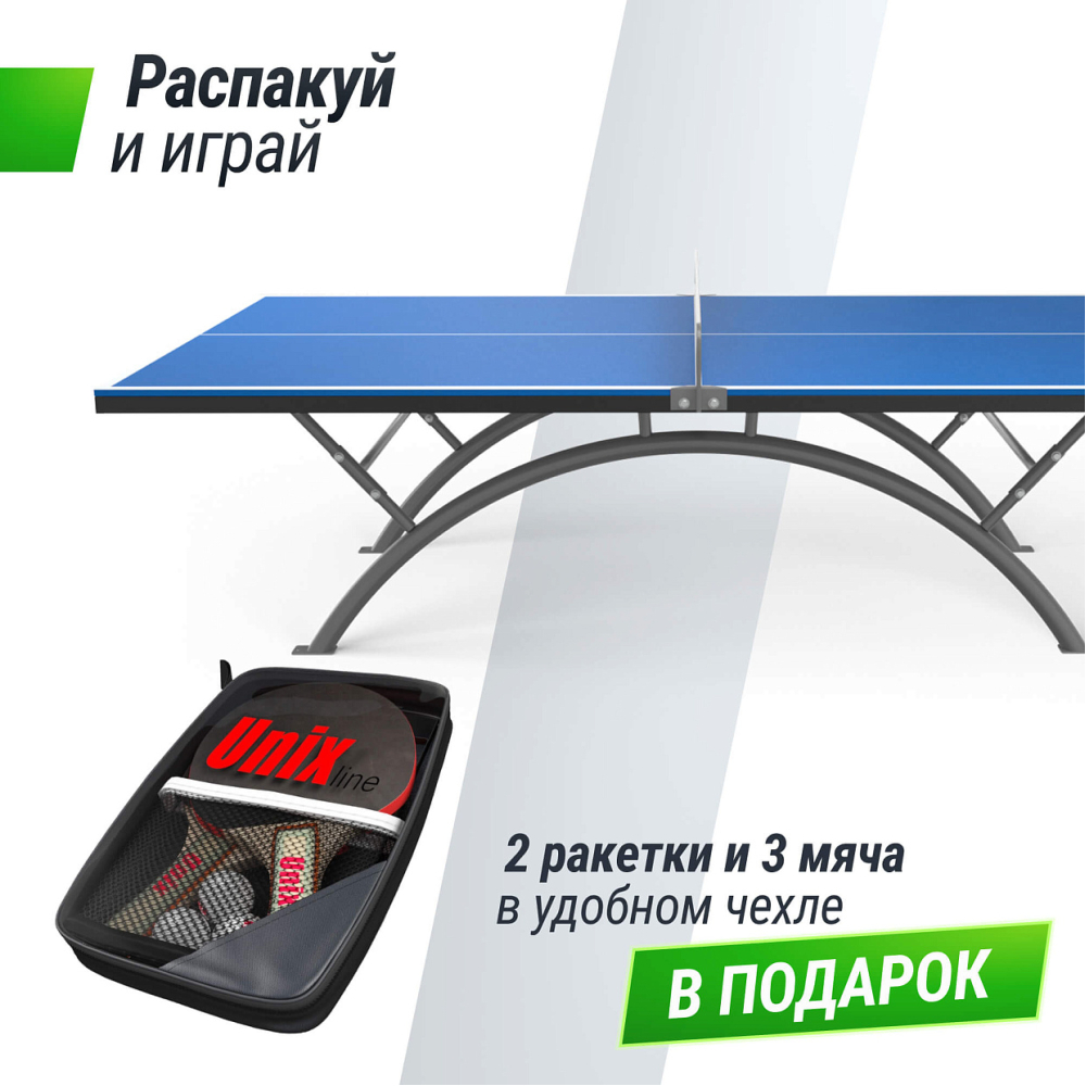Антивандальный всепогодный стол для настольного тенниса UNIX Line 14 мм разработан специально для использования в парках, во дворах жилых домов, на даче, загородном участке, спортивной площадке на улице. Стол от UNIX Line - отличное решение для всех любителей настольного тенниса! Независимо от погоды или времени года, вы сможете наслаждаться спортивной игрой в теннис с друзьями и семьей!. . Особенностью конструкции является возможность капитального, жесткого крепления стола к поверхности с твердым покрытием. Монтаж рекомендуется осуществлять анкерными болтами (приобретаются отдельно). Прочная металлическая рама обеспечивает непревзойденную устойчивость на любой поверхности, позволяет наслаждаться игрой как на открытом воздухе, так и в помещении.. . Столешница уличного стола UNIX Line изготовлена из SMС - панели с антибликовым покрытием и выдерживает многочисленные нагрузки, обладает хорошей устойчивостью к ударам, воздействию окружающей среды, влаге и температурным перепадам. Она не является горючим материалом, а также за счет высокой плотности и толщины столешницы (14 мм) обеспечивает великолепный отскок мяча и высокие игровые характеристики.. . Основой металлической рамы уличного всепогодного теннисного стола UNIX Line являются опоры из стальной трубы Ø60 и толщиной 1,4 мм. Благодаря таким характеристикам конструкции теннисный стол сохраняет жесткость и устойчивость на любых покрытиях.. . Антивандальная сетка с жестким креплением к столу изготовлена из стали толщиной 1 мм, толщина рамки составляет 10 мм. Благодаря этому, стол для пинг понга отлично подходит для эксплуатации как в частных домах и на дачах, так и в общественных местах, таких как парки, школы и кемпинги.. . В подарок к столу идет набор для игры: 2 ракетки, 3 шарика в сумке.. . Укрывной универсальный чехол для стола не входит в комплект и приобретается отдельно. Защищает от мелкого мусора и листвы. Теннисный стол для улицы станет отличным вариантом для детей, подростков и взрослых, даст возможность активно проводить время как в доме, так и на улице, наслаждаясь игрой. .