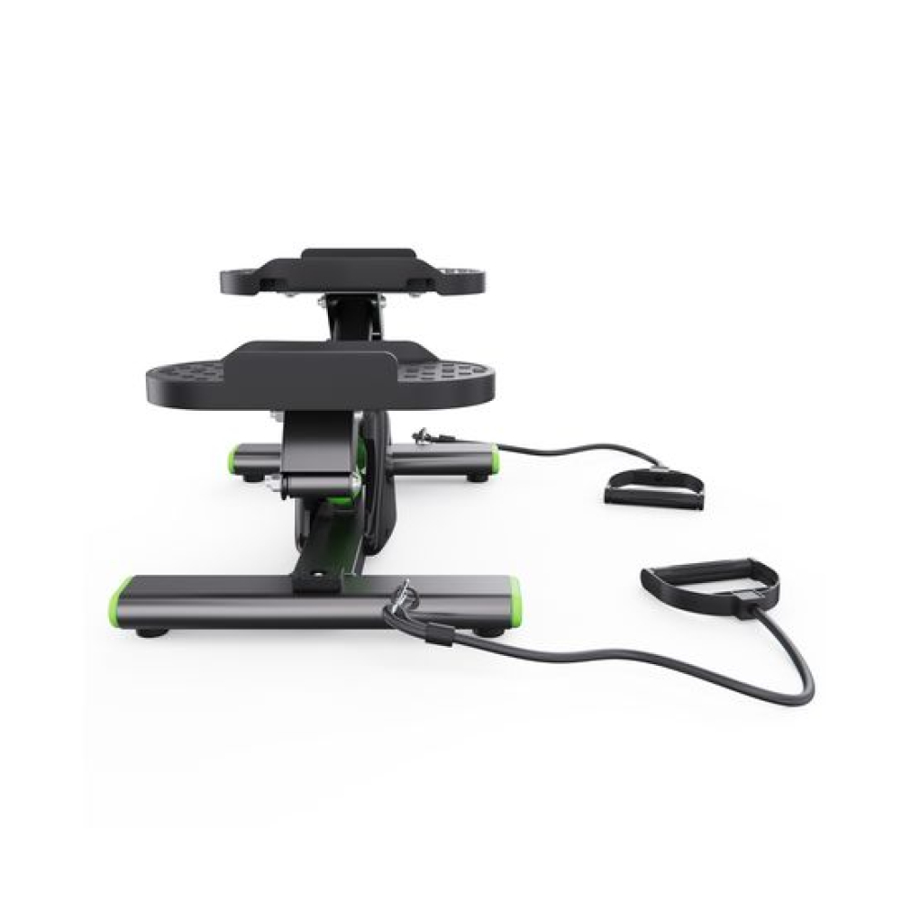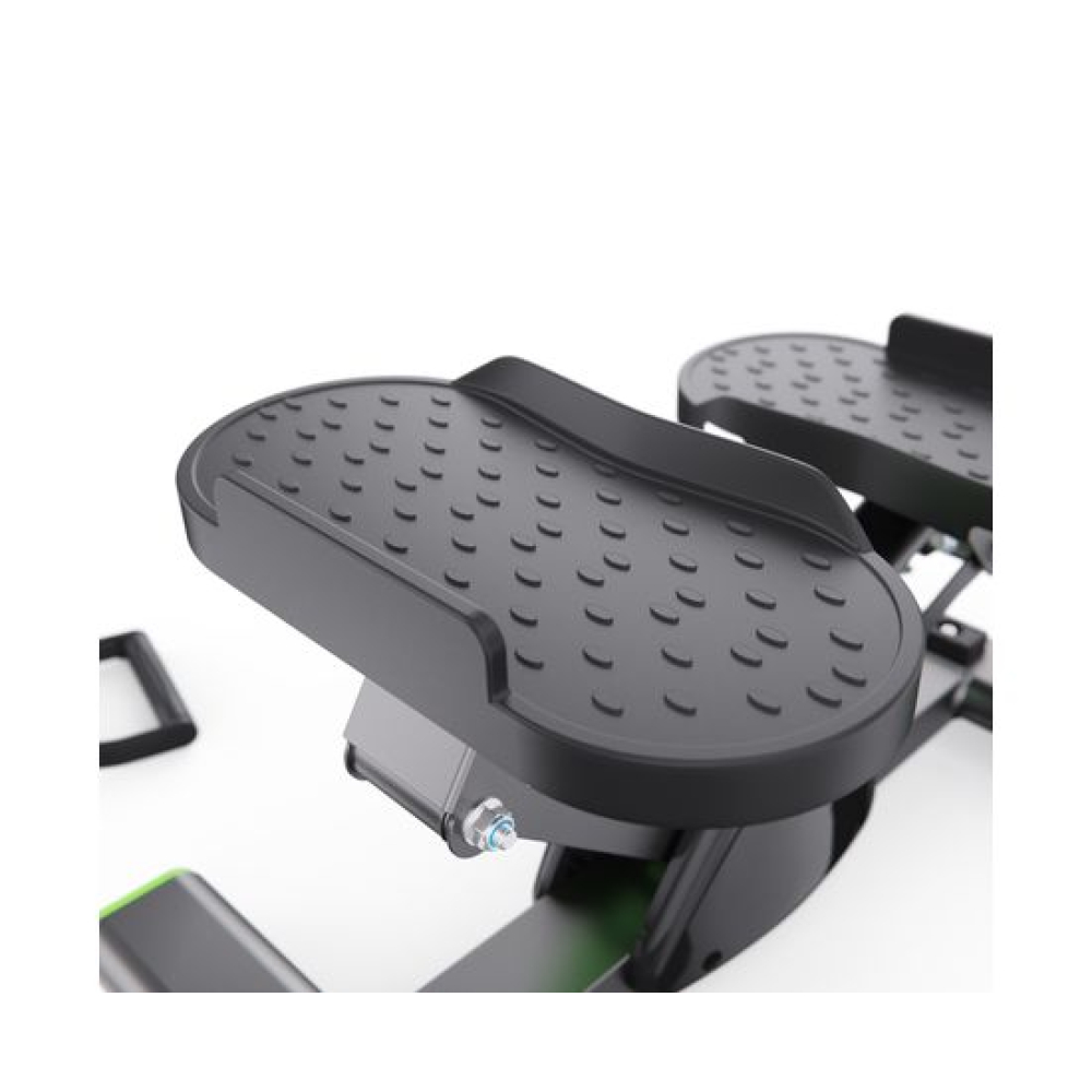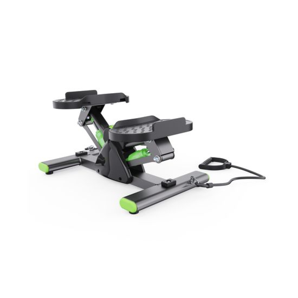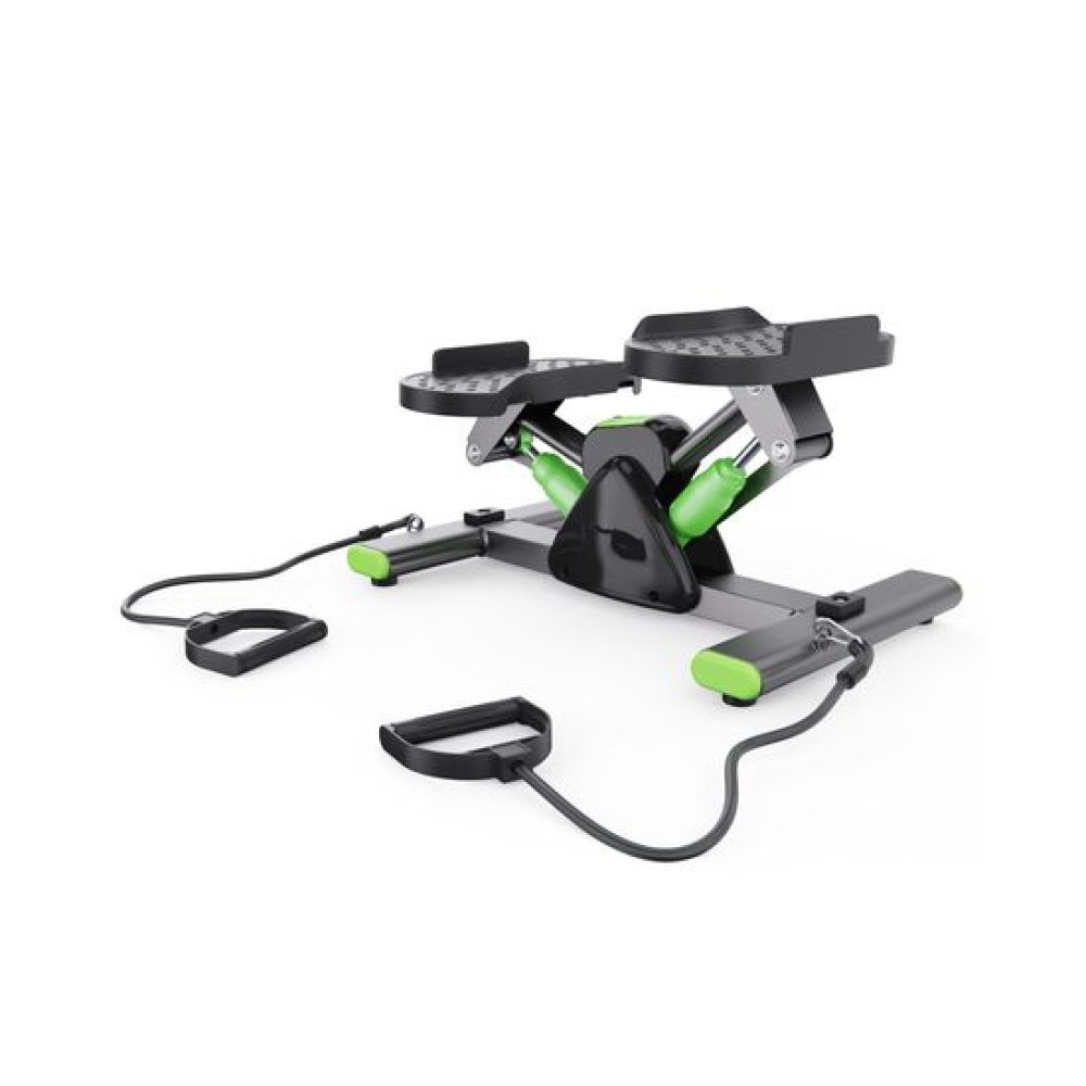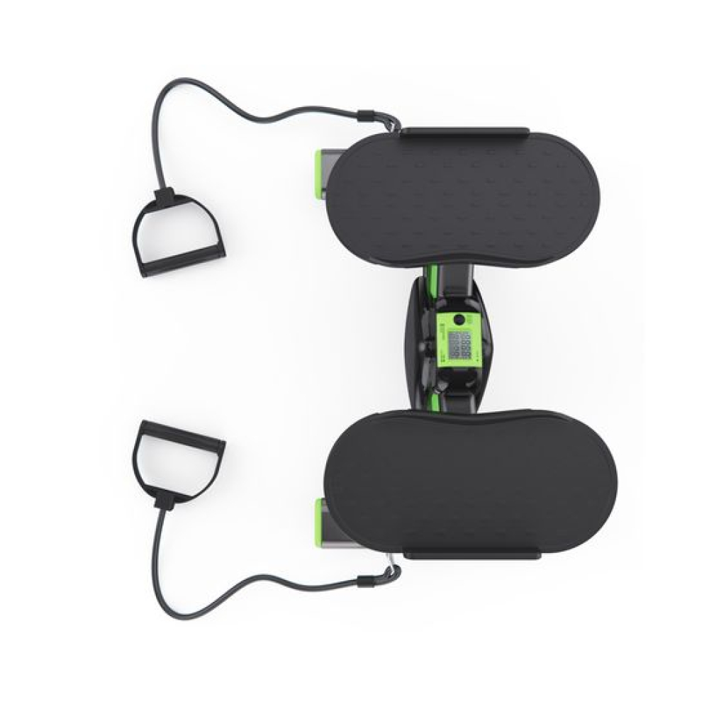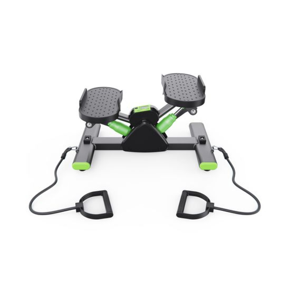 Балансировочный степпер с эспандерами DFC SC-S012E зеленого цвета — идеальный тренажер для ног, который сочетает в себе функциональность, эффективность и стильный дизайн. Этот компактный степпер тренажер для дома позволит вам тренироваться в комфортных условиях, укрепив сердечно-сосудистую систему и проработав основные группы мышц: бедра, икры и верхнюю часть тела.Максимальный вес пользователя для занятий на степпере равен 100 кг. Использование высококачественного гидравлического цилиндра обеспечивает долговечность и минимальный уровень шума во время тренировки. Степер имеет небольшой размер 43,5 х 27,5 х 22,5 см и легко помещается в углу комнаты, что делает его отличным выбором для небольших пространств.Рифленые педали размером 27 x 13 см обеспечивают надежное сцепление с обувью и предотвращают скольжение во время упражнений, обеспечивая безопасность. Оптимальное расстояние между педалями 17 см обеспечивает естественное положение ног во время тренировок, что способствует правильной биомеханике движений. Это минимизирует нагрузку на суставы, позволяя избежать чрезмерного напряжения в стопах и голенях.Степпер тренажер оснащен монохромным LCD дисплеем, который отображает ключевые параметры во время тренировки: время, калории, количество шагов , количество шагов в минуту и режим сканирования. Для работы дисплея потребуется 1 батарейка LR44 (в комплекте).В комплекте идут эспандеры 70,5 см для одновременной проработки нижней и верхней части тела, что делает тренировки более разнообразными и эффективными. Резиновые накладки на нижней части министеппера предотвращают скольжение и повышают устойчивость, добавляя уверенности при выполнении упражнений.Балансировочный мини степпер тренажер DFC SC-S012E — это универсальный тренажер для похудения, который станет отличным помощником в поддержании физической формы!
