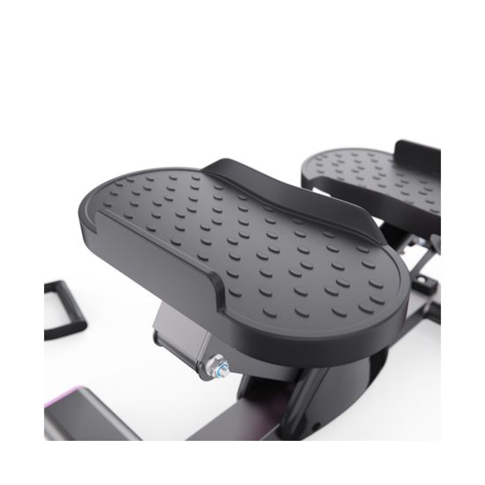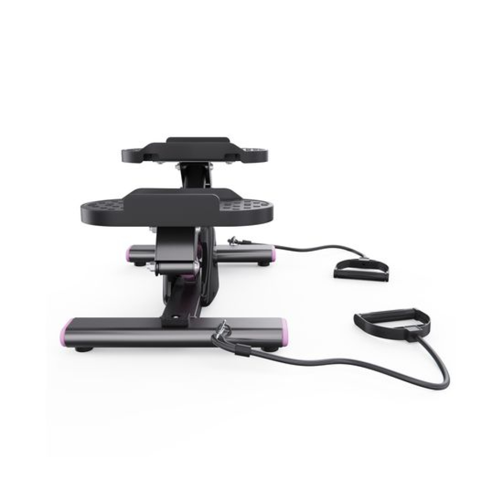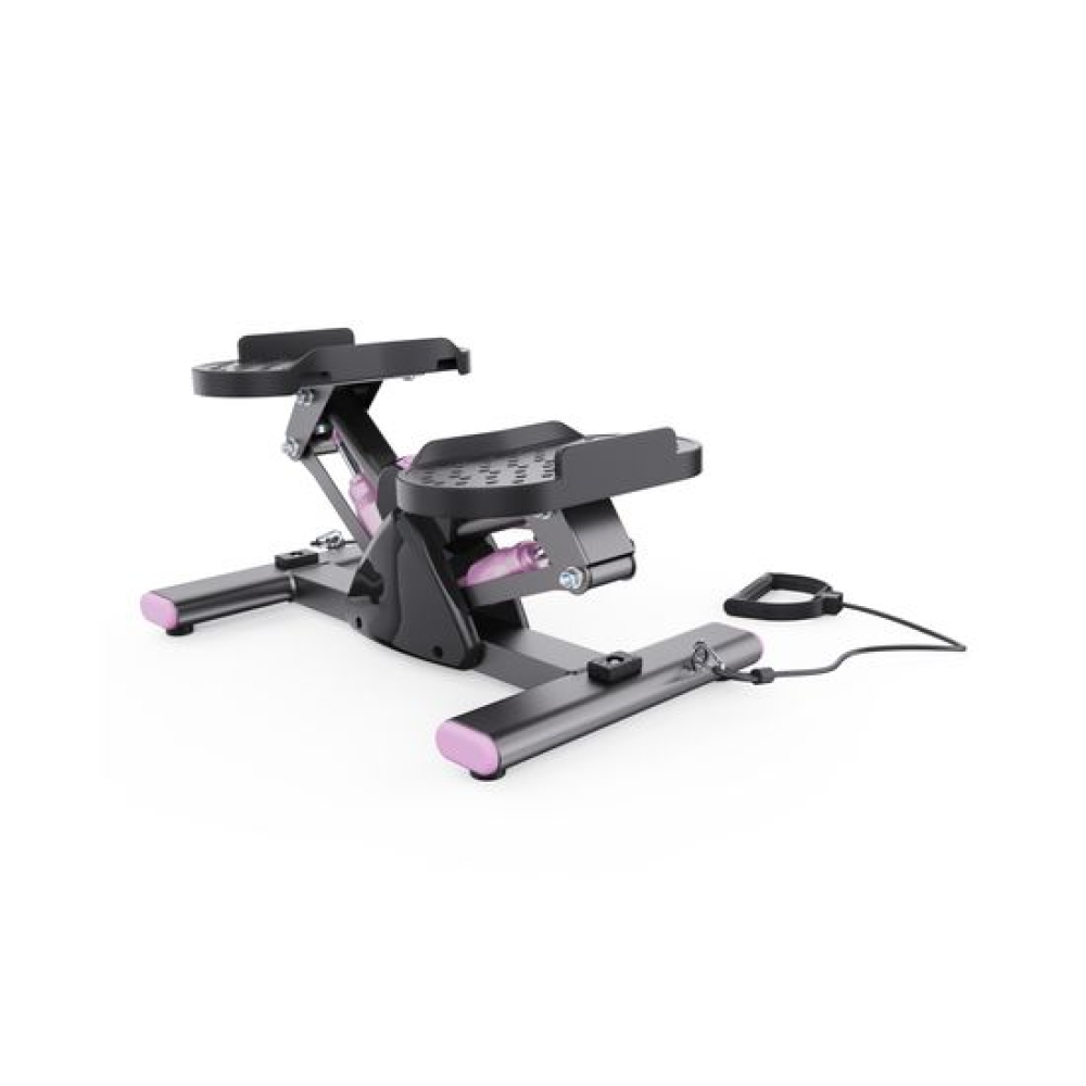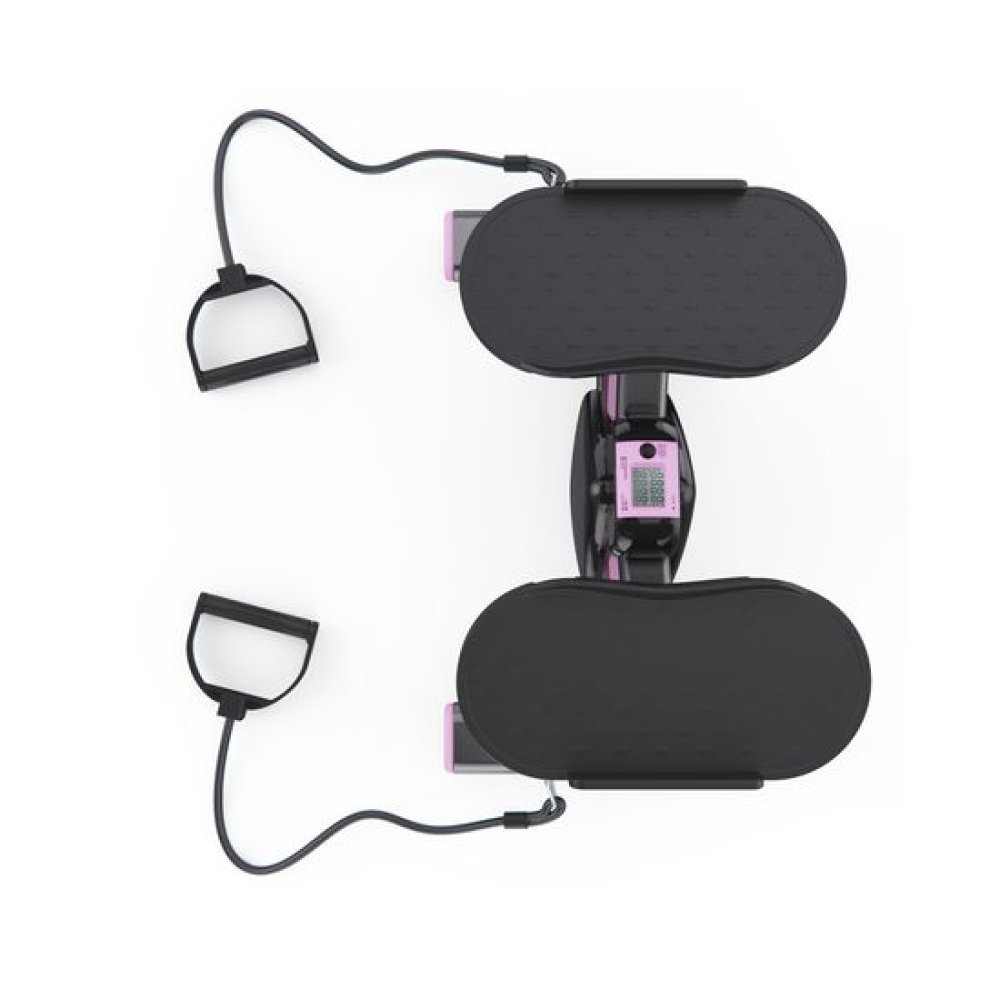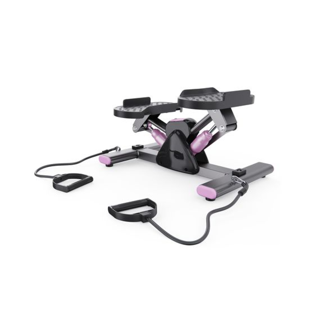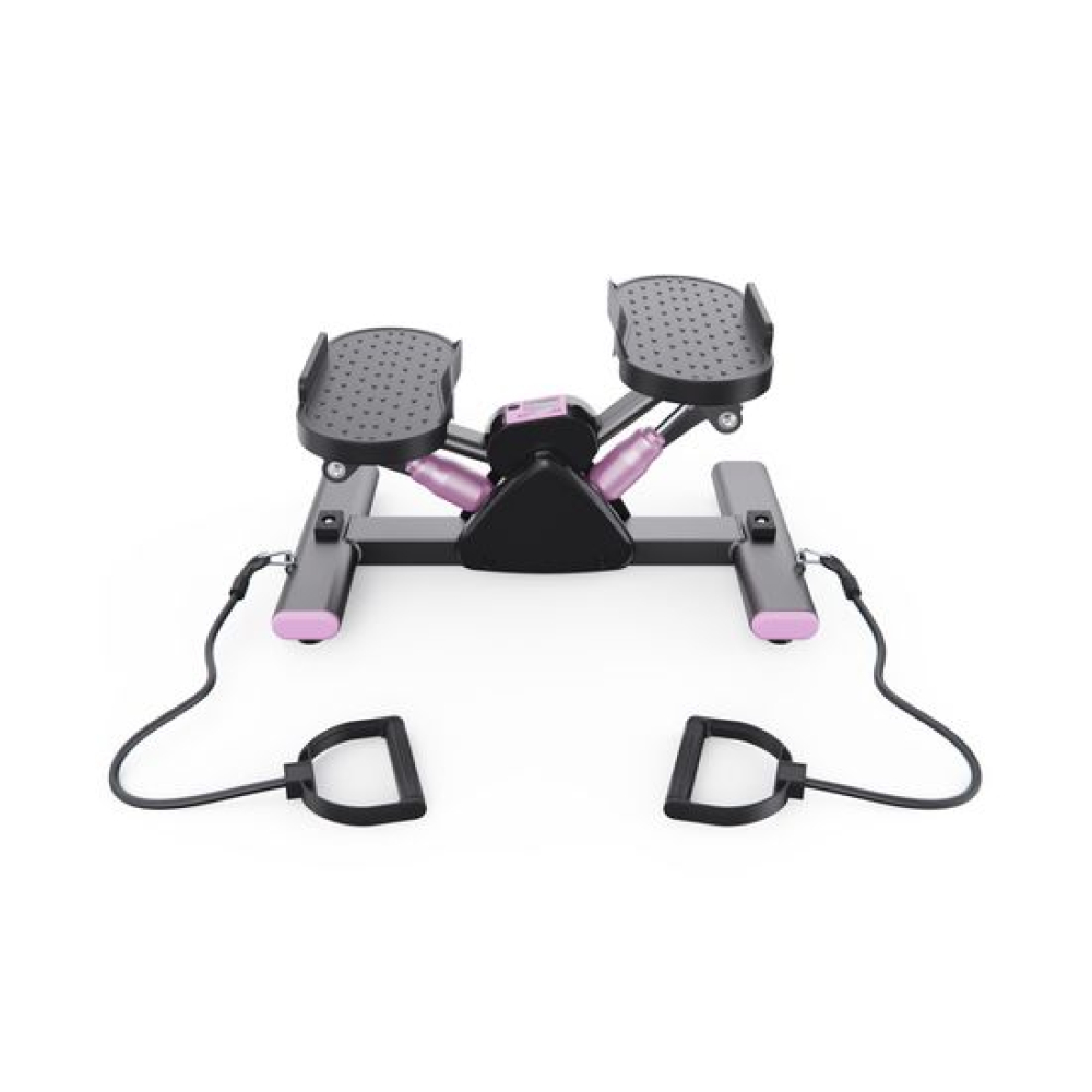 Балансировочный степпер с эспандерами DFC SC-S012E розового цвета — идеальный тренажер для ног, который сочетает в себе функциональность, эффективность и стильный дизайн. Этот компактный степпер тренажер для дома позволит вам тренироваться в комфортных условиях, укрепив сердечно-сосудистую систему и проработав основные группы мышц: бедра, икры и верхнюю часть тела.Максимальный вес пользователя для занятий на степпере равен 100 кг. Использование высококачественного гидравлического цилиндра обеспечивает долговечность и минимальный уровень шума во время тренировки. Степер имеет небольшой размер 43,5 х 27,5 х 22,5 см и легко помещается в углу комнаты, что делает его отличным выбором для небольших пространств.Рифленые педали размером 27 x 13 см обеспечивают надежное сцепление с обувью и предотвращают скольжение во время упражнений, обеспечивая безопасность. Оптимальное расстояние между педалями 17 см обеспечивает естественное положение ног во время тренировок, что способствует правильной биомеханике движений. Это минимизирует нагрузку на суставы, позволяя избежать чрезмерного напряжения в стопах и голенях.Степпер тренажер оснащен монохромным LCD дисплеем, который отображает ключевые параметры во время тренировки: время, калории, количество шагов , количество шагов в минуту и режим сканирования. Для работы дисплея потребуется 1 батарейка LR44 (в комплекте).В комплекте идут эспандеры 70,5 см для одновременной проработки нижней и верхней части тела, что делает тренировки более разнообразными и эффективными. Резиновые накладки на нижней части министеппера предотвращают скольжение и повышают устойчивость, добавляя уверенности при выполнении упражнений.Балансировочный мини степпер тренажер DFC SC-S012E — это универсальный тренажер для похудения, который станет отличным помощником в поддержании физической формы!