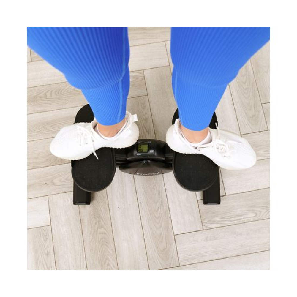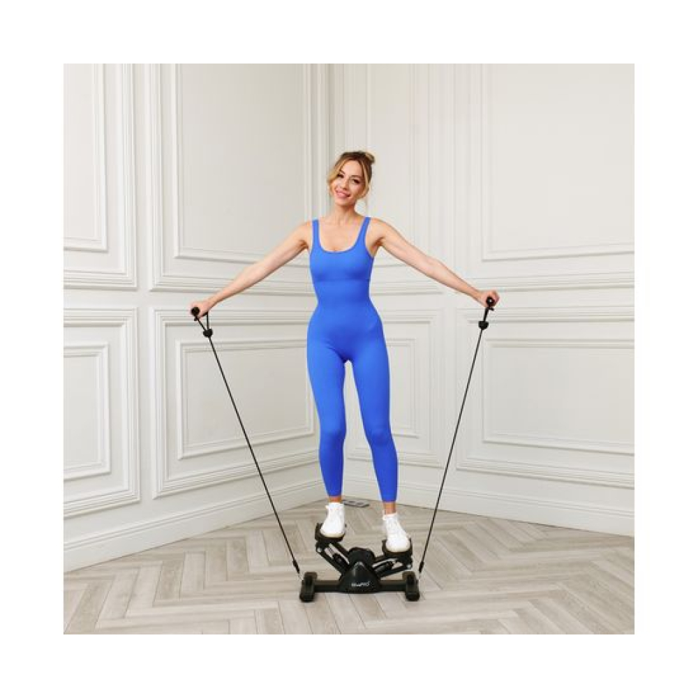 Side-степпер педальный тренажер XtivePRO чёрного цвета - это идеальный выбор для тех, кто хочет укрепить мышцы ног и ягодиц, а также избавиться от лишнего жира. С помощью этого тренажера вы сможете провести эффективную тренировку, которая поможет вам достичь желаемых результатов. В отличие от мини-степпера, XtivePRO более вариативен и безопасен для суставов. Для консоли нужна батарейка ААА, не входит в комплект.Сайд-степпер XtivePRO изготовлен из качественных материалов - пластика PP и стальной трубы. Благодаря этому он обладает высокой прочностью и долговечностью. Черный цвет стильный и универсальный, он подойдёт под любой интерьер. В комплекте поставляются эспандеры для дополнительной нагрузки на руки.Особенностью сайд- степпера является его V-образная форма, которая обеспечивает устойчивость во время тренировки и снижает нагрузку на суставы. Кроме того, благодаря своей конструкции, степпер может выдерживать вес до 100 кг, что делает его подходящим для людей с разной физической подготовкой.Резиновые ножки степпера обеспечивают его устойчивость на полу и предотвращают скольжение. Благодаря этому вы сможете проводить тренировки безопасно и комфортно.Тренажер для ног и ягодиц XtivePRO подходит как для новичков, так и для более опытных пользователей. Он прост в использовании и не требует специальных навыков или знаний, однако воздействует все мышцы ног, спины и живота. Вот несколько вариантов положения ног: Параллельное расположение стоп на педалях для проработки мышц бёдер и поясницы Расположение на педалях стопами наружу: внутренняя поверхность бедра и внутренние косые мышцы живота Т-образное расположение стоп: внутренняя и внешняя поверхности бедра, икроножные мышцы Шаги ногами вперёд-назад: икроножные мышцы, мышцы бедра, ягодицы