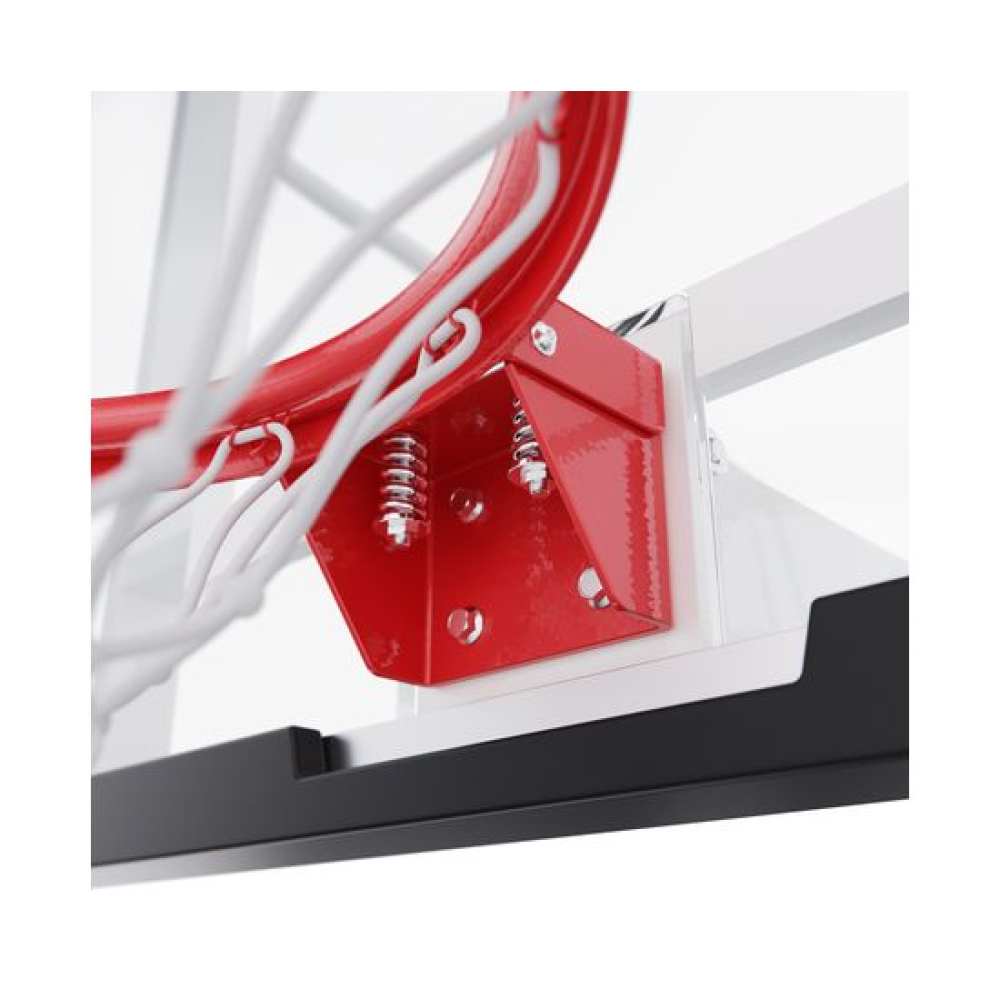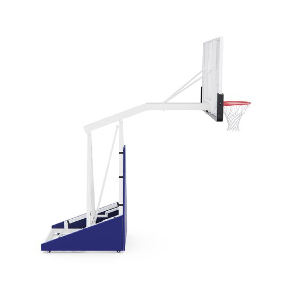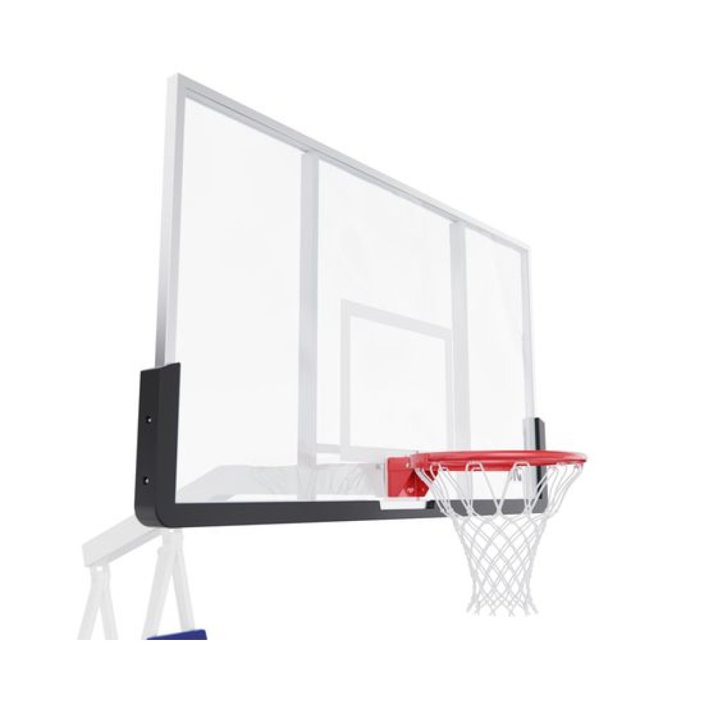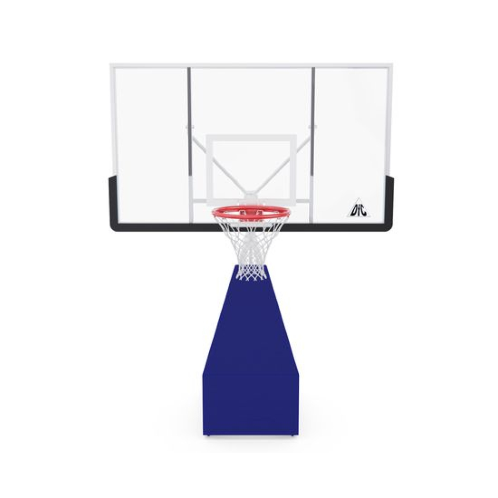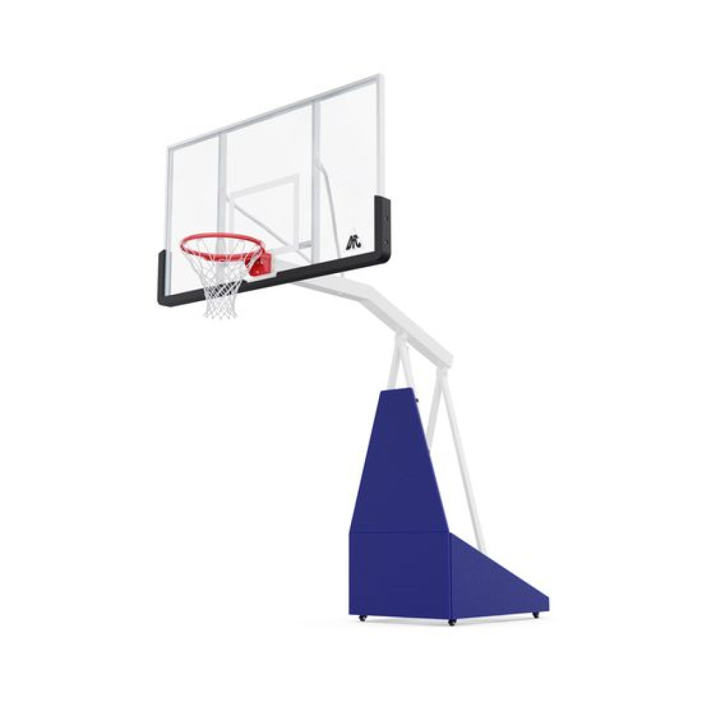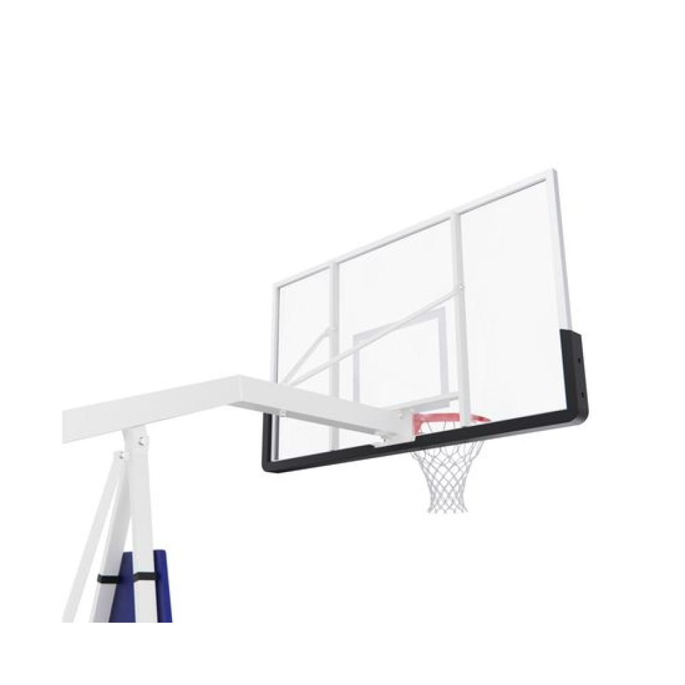 Баскетбольная мобильная стойка клубного уровня для установки в помещении и на улице. Баскетбольный щит размером 180 х 105 см из закаленного стекла толщиной 12 мм в алюминиевой раме.Стойка оснащена пружинным механизмом для складывания и раскладывания. При раскладывании стойка автоматически устанавливается на рабочую высоту в 305 см. Кольцо не регулируется по высоте.В сложенном положении стойку можно перемещать по площадке с помощью колес, входящих в комплект поставки.Стандартное кольцо диаметром 45 см оранжевого цвета, с всепогодной нейлоновой сеткой в комплекте.Кольцо имеет 2 встроенных амортизатора и выдерживает мгновенную нагрузку 220 кг в передней части.Для защиты игроков во время игры стойка имеет защитные маты в нижней части щита, на основании стойки по периметру и на шейке стойки.До использования стойки для устойчивости на раму должно быть размещено 350 кг.ВАЖНО!!! В целях безопасности и во избежание повреждения оборудования запрещается висеть на кольце и других элементах баскетбольной стойки.