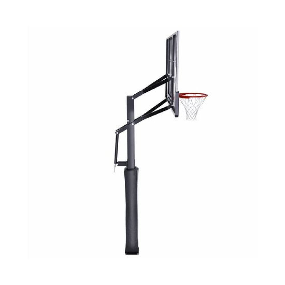 Стационарная баскетбольная стойка DFC ING72G относится к стойкам клубного уровня. Благодаря щиту из закаленного стекла толщиной 10 мм и размерностью 180 х 105 см (72’’), вы получите максимальное удовольствие от игры. По периметру щит имеет кант из металла. В нижней части щита и на стойке установлено защитное покрытие Poly Pade. Стойка комплектуется кольцом DFC R3 с амортизацией, которое выдерживает нагрузку до 250 кг в передней части. Бесступенчатая регулировка высоты с помощью ручки в диапазоне от 245 до 305 см.Основание стойки бетонируется с помощью 4 анкеров (в комплекте), размер ямы под площадку должен составлять 50 х 50 см.В целях безопасности и во избежание повреждения оборудования запрещается висеть на кольце и других элементах баскетбольной стойки.