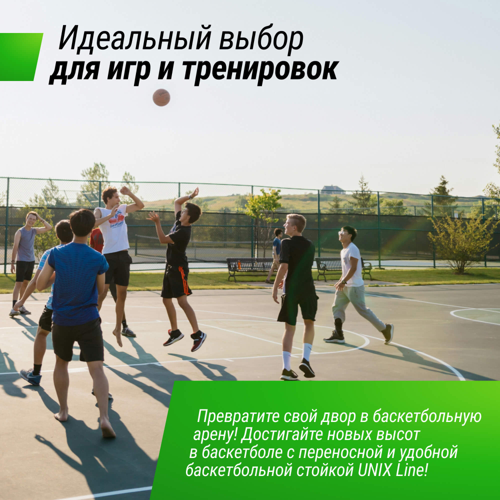 Баскетбольная стойка UNIX Line B-Stand-TG PRO - идеальное решение для всех поклонников баскетбола, от начинающих игроков до опытных профессионалов. Сочетание прочности, надежности и функциональности делает эту стойку незаменимым спортивным аксессуаром для вашего двора или площадки. Специально разработанная устойчивая конструкция обеспечивает стабильность и безопасность во время игры, позволяя вам наслаждаться каждым забитым мячом. Олимпийский стандарт кольца 45 см позволит почувствовать себя настоящим профи в игре. Регулируемая высота щита от 2.30 до 3.05 м позволяет настраивать кольцо со стойкой под свой рост и профессионализм. В основании баскетбольного кольца установлен пружинный механизм амортизирующий ударную нагрузку на кольцо, которое изготовлено из стали диаметром 16 мм. Такие высококачественные материалы уличной баскетбольной стойки 305 см как всепогодная нейлоновая сетка, щит из закаленного стекла толщиной 10 мм, стальные трубы стойки и металлическое основание с противовесом гарантируют долгий срок службы, устойчивость к погодным условиям и главное - безопасность. Простая сборка и возможность перемещения стойки на двух колесах, обеспечат комфорт даже при подготовке к игре. Баскетбольная стойка UNIX Line производится из стали с защитным полимерным покрытием. Собирается как конструктор по частям, которые фиксируются замковым соединением. Сооружение используется как в закрытых помещениях, так и для уличных соревнований. Команда может перевозить свое оборудование на другие площадки - стойки разбираются, складываются и легко переносятся. Мобильную баскетбольную стойку можно использовать в помещении и на улице. Данная система не предназначена для детей младше 3 лет. Крайне не рекомендуется выполнять заброс мяча, ухватившись за стойку или за кольцо корзины, так как она не предназначена для подобного использования. Стойка UNIX Line B-Stand-TG PRO оснащена транспортировочными колесами, которые блокируются, когда конструкция находится в рабочем состоянии на площадке. В основание необходимо разместить противовес: мешки с песком, блоки из бетона или металла весом 140 кг (противовес приобретается отдельно). Баскетбольная стойка с кольцом станет отличным развлечением для дружеских матчей на природе, а также полезным инвентарем для тренировок!