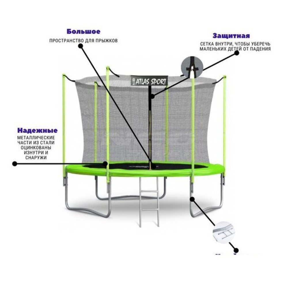 Технические характеристики Батут Atlas Sport 183 см - 6ft (внутренняя сетка, зеленый)