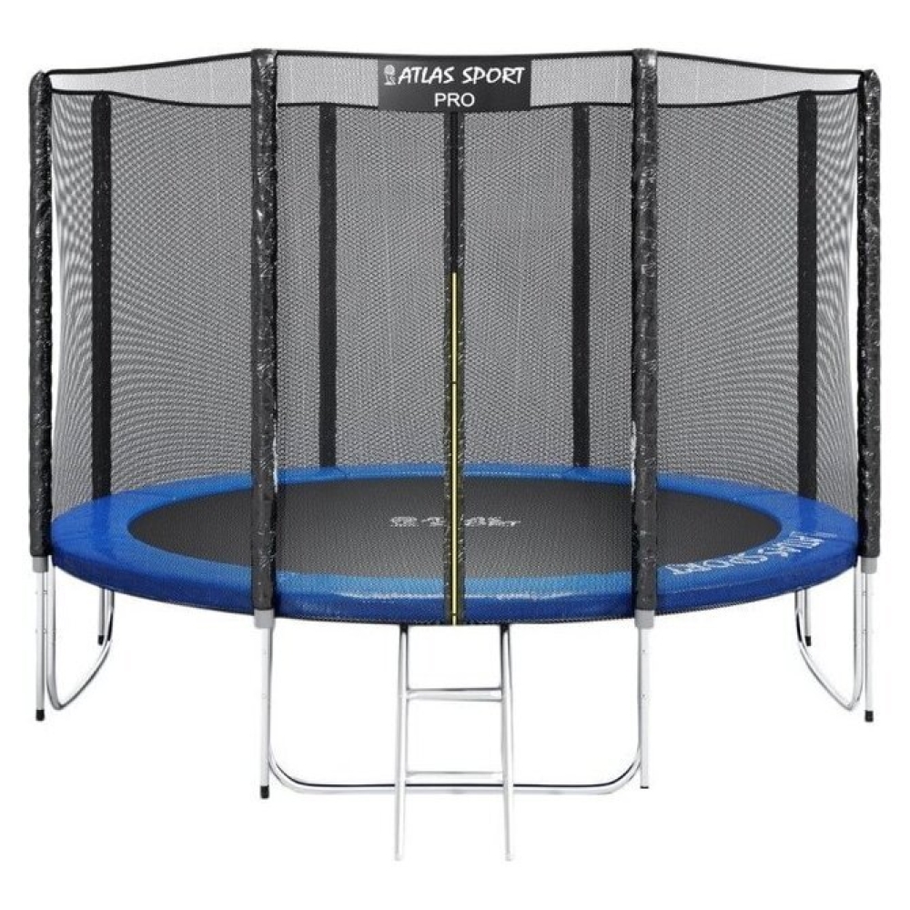Батут Atlas Sport 374 см - 12ft Pro (усиленные опоры, внешняя сетка, синий)