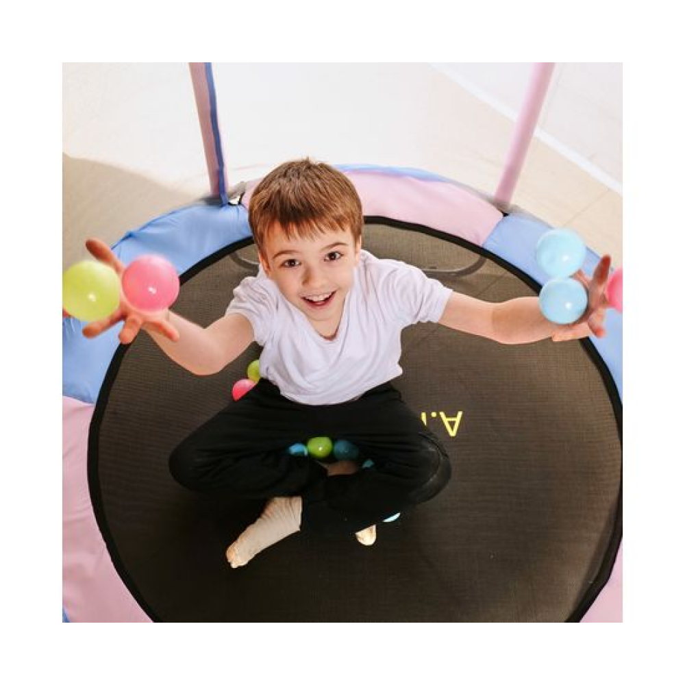 Яркий и красочный батут DFC A.KOU Kids 55” станет настоящим центром развлечения для ваших детей, принося массу радости и удовольствия! Идеально подойдет для детей весом до 50 кг, позволяя им наслаждаться прыжками и забавными играми на свежем воздухе или в помещении! В комплекте цветные мячики из мягкого пластика.Поверхность батута изготовлена из высококачественного полипропилена, способного выдерживать ультрафиолетовые лучи, что гарантирует долговечность и надежность изделия.Внешняя защитная сетка высотой 90 см обеспечивает безопасность пользователей, предотвращая возможные выпады за пределы батута. Она легко открывается и закрывается с помощью специального замка и надежно фиксируется на стойках, выполненных из высокопрочной стали.Батут оснащен 36-ю пружинами диаметром 2,5 мм и длиной 92 мм, которые обеспечивают мягкость и плавность прыжков. Кроме того, батут имеет прочный защитный кожух из полиэстера, который защищает прыгунов от травм и смягчает приземление.Основная рама батута состоит из 6-ти прочных стальных труб диаметром 25 мм и толщиной 1 мм, что обеспечивает устойчивость и безопасность при использовании. U-образные ножки и стойки для защитной сетки также выполнены из высокопрочной стальной трубы диаметром 25 мм с толщиной стенок 0,8 мм.