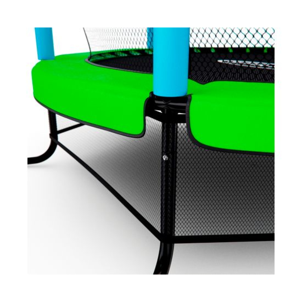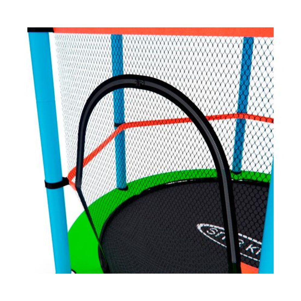 Детский батут DFC SMRKIDS 55” зелёного цвета станет настоящим центром развлечения, принося массу радости и удовольствия! Идеально подойдет для ребёнка весом до 45 кг, позволяя ему наслаждаться прыжками и забавными играми на свежем воздухе или в помещении!Поверхность батута изготовлена из высококачественного полипропилена, способного выдерживать ультрафиолетовые лучи, что гарантирует долговечность и надежность изделия.Внешняя защитная сетка высотой 126 см обеспечивает безопасность пользователей, предотвращая возможные выпады за пределы батута. Она легко открывается и закрывается с помощью специального замка и надежно фиксируется на стойках, выполненных из высокопрочной стали.Батут оснащен 48-ю пружинами диаметром 3 мм и длиной 86 мм, которые обеспечивают мягкость и плавность прыжков. Кроме того, батут имеет прочный защитный кожух из полиэстера, который защищает прыгунов от травм и смягчает приземление.Основная рама батута состоит из 6-ти прочных стальных труб диаметром 25 мм, что обеспечивает устойчивость и безопасность при использовании. U-образные ножки и стойки для защитной сетки также выполнены из высокопрочной стальной трубы диаметром 25 мм.
