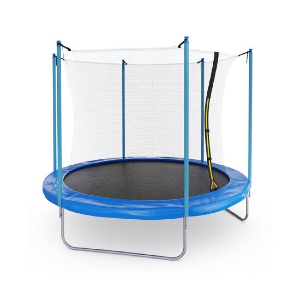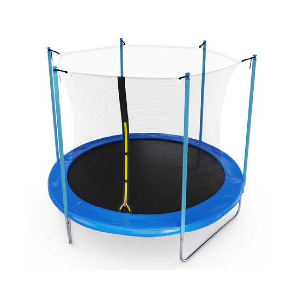 Батут с внутренней сеткой DFC Femmto 10FT синиго цвета - отличный выбор для активного отдыха на свежем воздухе! Максимальный вес пользователя - 100 килограмм, что позволяет использовать батут как взрослым, так и детям. Цвет батута - синий, что делает его не только функциональным, но и стильным элементом ландшафтного дизайна.Диаметр батута составляет 10 футов (305 сантиметров), что позволяет комфортно разместиться на нем всей семье или компании друзей. Батут оснащен 54 пружинами, которые обеспечивают высокую прыгучесть и комфортное приземление. Пружины изготовлены из прочного и долговечного материала - нержавеющей стали.Прыжковое полотно выполнено из высококачественного полипропилена, который обладает высокой прочностью, устойчивостью к УФ-излучению и влаге. Защитный мат состоит из трех слоев: PE (полиэтилен), EPE (этиленвинилацетат) и PE (полипропилен). Толщина мата составляет 10 миллиметров, что обеспечивает дополнительную защиту от травм и ушибов при прыжках.Основная рама изготовлена из шести U-образных стальных труб диаметром 38 миллиметров и толщиной 1,2 миллиметра, что обеспечивает ее прочность и долговечность. Ножки U-образной формы, выполнены из стальных труб диаметром 38 миллиметров и толщиной 1 миллиметр, что придает батуту устойчивость и надежность. Стойки под защитную сетку изготовлены из стальных труб диаметром 25 миллиметров и толщиной 1 миллиметр. Высота защитной сетки составляет 170 сантиметров, что обеспечивает полную безопасность при прыжках на батуте