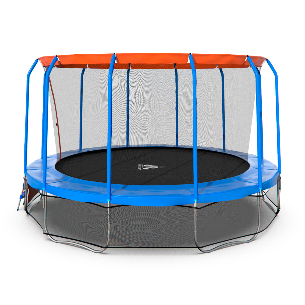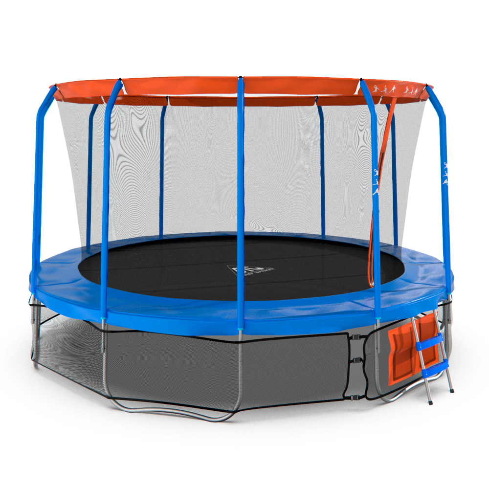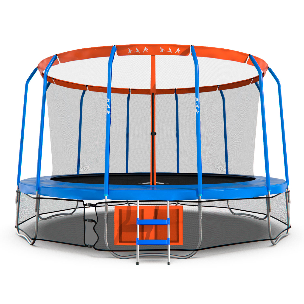 Батуты DFC давно известны на российском рынке. Зарекомендовали себя как надежные, выполненные из качественных материалов, неприхотливы в обслуживании. Представляем вам новую серию батутов от компании DFC - серия JUMP BASKET с внутренней защитной сеткой и яркой расцветкой – синий с оранжевым . Высота батутов серии от 46 до 85 см. Надёжность конструкции Особое внимание при изготовлении батутов DFC уделяется качеству. Надежность конструкции обеспечивается прочной рамой с полимерным двусторонним покрытием, нанесенным методом холодной гальванизации. Рама изготовлена из трубы диаметром 38 мм и толщиной 1,4 мм. U-образные ножки в количестве 4 штук диаметром 38 мм и толщиной 1,3 мм. Пружины Пружины выполнены из высококачественной стали, которые имеют повышенную защиту от износа и растягивания, тем самым позволяя продлить срок службы батута. На батуте используется 108 пружин длиной 136 мм. Прыжковое полотно и кожух Для обеспечения безопасности пользователя пружины закрыты защитным чехлом. Батут выдерживает вес пользователя до 150 кг. Высота батута от пола до прыжкового полотна 85 см. Диаметр батута составляет 487,68 см. Прыжковая поверхность выполнена из самого прочного на настоящий момент полипропилена последнего поколения "Перматрон". Сумка для обуви Защитная сетка под батутом и сумка для обуви входят в комплект поставки. Сетка послужит дополнительной защитой от проникновения под батут домашних животных или маленьких детей. Лестница Лестница для удобного входа в батут так же поставляется в комплекте. Нескользящая поверхность ступеней обеспечит безопасный вход в батут. Защитная сетка Внутренняя защитная сетка обеспечит безопасность вам и вашим близким от случайного падения, изготовлена из высокопрочного нейлона, надежно крепится к стойкам батута. Стойки под защитную сетку в количестве 8 штук, диаметром 25 мм и толщиной 1,2 мм. Высота защитной сетки 180 см. Для защиты детей вход/выход через сетку выполнен на молнии с фиксирующими защелками с внешней стороны.