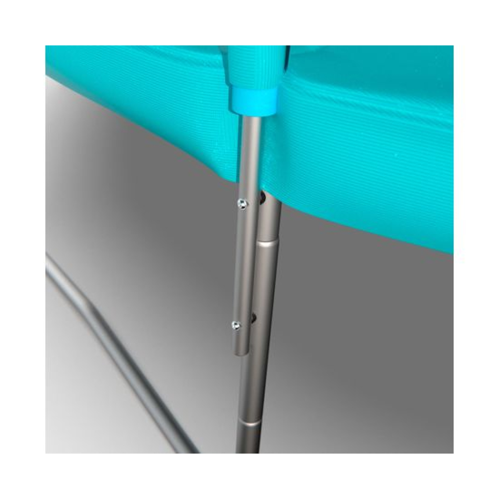 Представляем вам новую серию батутов от компании DFC - модели JUMP STREET с внутренней защитной сеткой и яркой расцветкой - изумрудный цвет. Высота батутов серии от 46 до 85 см.Батуты DFC давно известны на российском рынке. Зарекомендовали себя как надежные, выполненные из качественных материалов, неприхотливы в обслуживании. Лестница для батута не входит в комплект поставки, приобретается отдельно. В комплекте с батутом поставляются ключи для сборки и подробная инструкция на русском языке. Батуты упакованы в прочную картонную упаковку.Надёжность конструкцииОсобое внимание при изготовлении батутов бренд DFC уделяется качеству. Надежность конструкции обеспечивается прочной рамой.Рама изготовлена из трубы диаметром 38 мм и толщиной 1,3 мм. U-образные ножки в количестве 6 штук диаметром 38 мм и толщиной 1,3 мм.ПружиныПружины выполнены из высококачественной стали, которые имеют повышенную защиту от износа и растягивания, тем самым позволяя продлить срок службы батута.На батуте используется 108 пружин длиной 136 мм.Защитная сеткаВнутренняя защитная сетка обеспечит безопасность вам и вашим близким от случайного падения, изготовлена из высокопрочного нейлона, надежно крепится к стойкам батута. Стойки под защитную сетку в количестве 12 штук, диаметром 25 мм и толщиной 1,2 мм. Высота защитной сетки 180 см.Для защиты детей вход/выход через сетку выполнен на молнии с фиксирующими защелками с внешней стороны.Прыжковое полотно и кожухДля обеспечения безопасности пользователя, пружины закрыты защитным чехлом (защитным матом). Высота батута от пола до прыжкового полотна 85 см. Диаметр батута составляет 487,68 см.Прыжковая поверхность выполнена из самого прочного на настоящий момент полипропилена последнего поколения "Перматрон". Батут выдерживает вес пользователя до 150 кг.