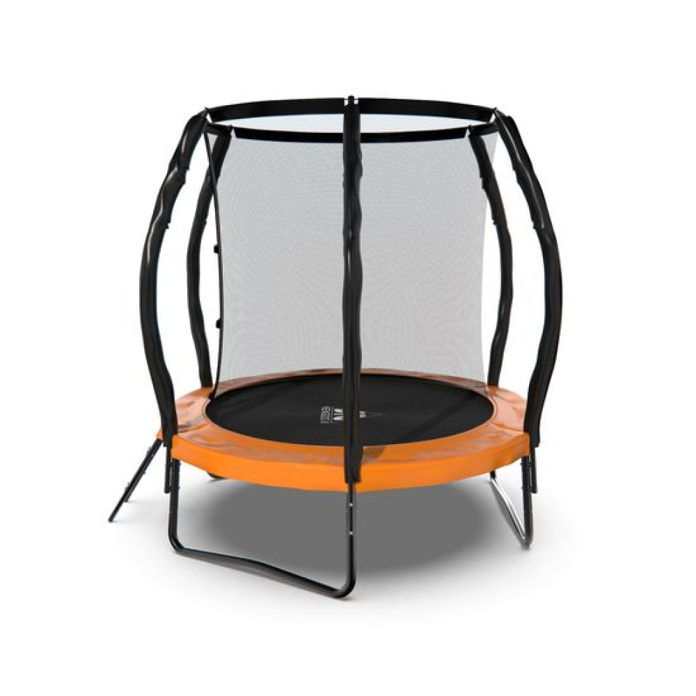 Представляем вам новую серию батутов от компании DFC - серия KENGOO II с внутренней защитной сеткой и яркой расцветкой - оранжевый с черным. Высота батутов серии KENGOO II - от 46 до 85 см. Батуты DFC давно известны на российском рынке. Зарекомендовали себя как надежные, выполненные из качественных материалов, неприхотливы в обслуживании. В комплекте с батутом поставляются ключи для сборки и подробная инструкция на русском языке. На батуты DFC предусмотрена гарантия сроком на 1 год. Батуты упакованы в прочную картонную упаковку с нанесенным красочным изображением.Надёжность конструкцииОсобое внимание при изготовлении батутов компания DFC уделяется качеству используемых материалов. Надежность конструкции обеспечивается прочной рамой с полимерным двусторонним покрытием, нанесенным методом холодной гальванизации. Гальваническое покрытие металла, является методом защиты от негативных внешних воздействий. Тонкая металлическая пленка защищает детали от влаги, продлевает срок службы и улучшает внешний вид.Рама изготовлена из трубы диаметром 32 мм и толщиной 1 мм. U-образные ножки в количестве 3 штук диаметром 32 мм и толщиной 1 мм.Защитная сеткаВнутренняя защитная сетка, поставляемая в комплекте, обеспечит безопасность вам и вашим близким от случайного падения, изготовлена из высокопрочного нейлона, надежно крепится к стойкам батута. Стойки под защитную сетку в количестве 6 штук, диаметром 25 мм и толщиной 1 мм. Высота защитной сетки 125 см. Плотность защитной сетки 100 гр/м².Для защиты детей вход/выход через сетку выполнен на молнии с фиксирующими защелками с внешней стороны.Прыжковое полотно и кожухДля обеспечения безопасности пользователя, пружины закрыты защитным чехлом. Высота батута от пола до прыжкового полотна 46 см. Диаметр батута составляет 152,4 см.Прыжковая поверхность выполнена из самого прочного на настоящий момент полипропилена последнего поколения "Перматрон" с защитой от ультрафиолетовых лучей. Батут выдерживает вес пользователя до 80 кг.ЛестницаВ комплект данной модели входит лестница.Конструкция лестницы простая и прочная.Рекомендуем приобрести лестницу для батутов от 6 футов по ссылке.ПружиныПружины выполнены из высококачественной стали, которые имеют повышенную защиту от износа и растягивания, тем самым позволяя продлить срок службы батута.На батуте используется 30 пружин длиной 116 мм.