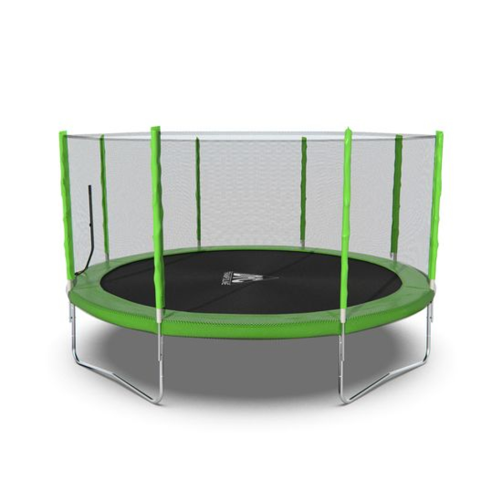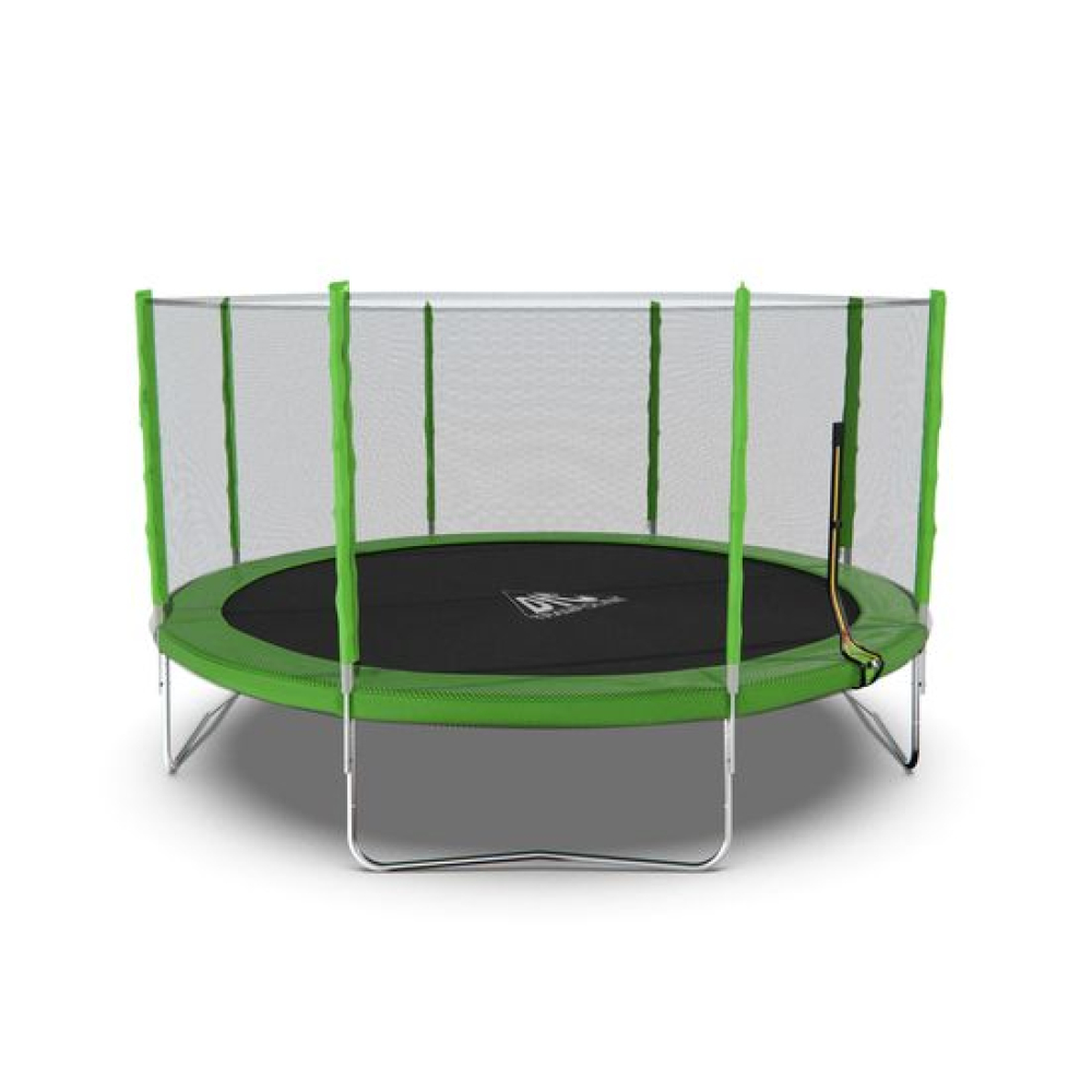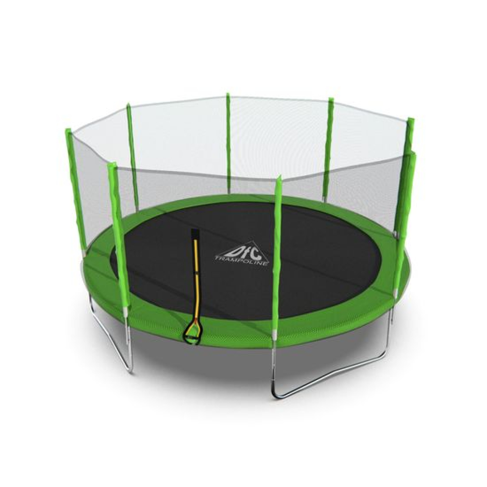 Обновленный батут популярной серии DFC TRAMPOLINE FITNESS. Батуты DFC давно известны на российском рынке. Они зарекомендовали себя как надежные, выполненные из качественных материалов, неприхотливые в использовании.Модель с внешней защитной сеткой и яркой зеленой расцветкой. Лестница в комплект не входит. Рекомендуем приобрести отдельно модели на 2 или 3 ступени, в зависимости от высоты батута. Высота батутов этой серии от 46 до 85 см.В комплекте с батутом поставляются ключи для сборки и подробная инструкция на русском языке. На батуты DFC предусмотрена гарантия сроком 12 месяцев. Батуты упакованы в прочную картонную упаковку из 5-слойного картона.Надёжность конструкцииОсобое внимание при изготовлении батутов компания DFC уделяется качеству. Надежность конструкции обеспечивается прочной рамой с оцинкованным покрытием, нанесенным методом холодной гальванизации. Рама изготовлена из круглой трубы диаметром 38 мм и толщиной 1,5 мм.ПружиныПружины выполнены из высококачественной стали, которые имеют повышенную защиту от износа и растягивания, тем самым позволяя продлить срок службы батута.На батуте используется 80 пружин длиной 165 мм и диаметром 3 мм.Защитная сеткаВнешняя защитная сетка, поставляемая в комплекте, обеспечит безопасность вам и вашим близким от случайного падения, изготовлена из высокопрочного нейлона, надежно крепится к стойкам батута.Стойки под защитную сетку в количестве 8 штук, диаметром 25 мм и толщиной 1,2 мм. Высота защитной сетки 170 см.Для защиты детей вход/выход через сетку выполнен на молнии с фиксирующими защелками с внешней стороны.Прыжковое полотно и кожухДля обеспечения безопасности пользователя, пружины закрыты защитным чехлом (защитным матом). Высота батута от пола до прыжкового полотна __ см. Диаметр батута составляет 426,72 см.Прыжковая поверхность выполнена из самого прочного на настоящий момент полипропилена последнего поколения "Перматрон". Имеет повышенную устойчивость к UV-излучению. Батут выдерживает вес пользователя до 150 кг.