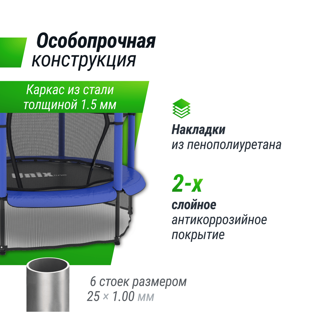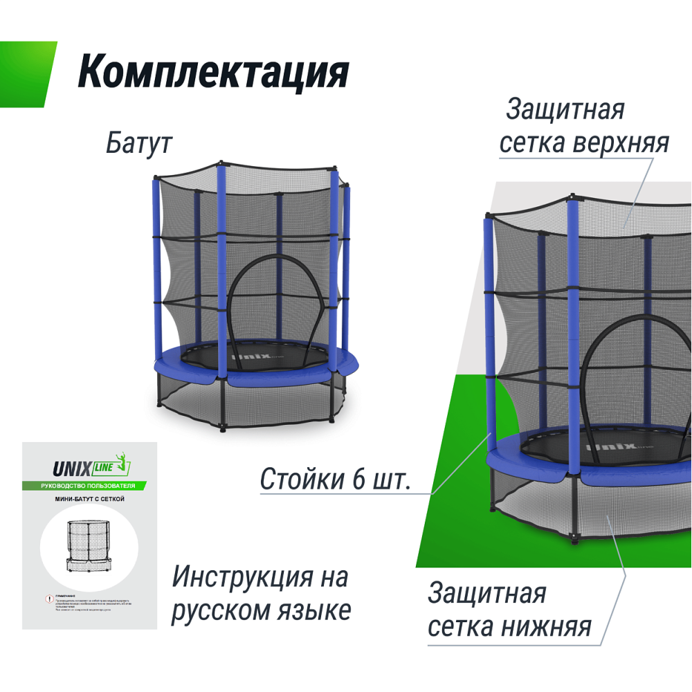 Добро пожаловать в мир веселья и активности с детским каркасным батутом! Детский батут UNIX Line Kids - идеальное развлечение для вашего ребенка, которое сочетает в себе веселье, физическую активность и развитие.. . Металлический каркас батута выполнен из прочной стали с двойной порошковой окраской, что обеспечивает надежную поддержку и стабильность во время прыжков. Упругий материал прыжкового полотна Перматрон и 30 жгутов гарантируют высокую эластичность и безопасность. Кроме того, батут имеет специальное покрытие для предотвращения скольжения, что делает его еще более безопасным для использования. Детский каркасный батут оснащен защитной сеткой, которая обеспечивает безопасность и предотвращает падения, а вход в батут фиксируется молнией. Ребенок сможет с удовольствием наслаждаться прыжками на детском батуте в любое время!. . Небольшой размер батута позволяет использовать его как на улице, так и дома. Будь то игра на свежем воздухе или занятия в помещении, детский каркасный батут будет идеальным спутником для вашего ребенка! Детский батут для дома поможет развитию координации, баланса и гибкости маленького спортсмена и радоваться каждому прыжку на нашем прочном и безопасном батуте!. . Предназначен для детей в возрасте от 2 до 7 лет, весом до 50 кг.. .