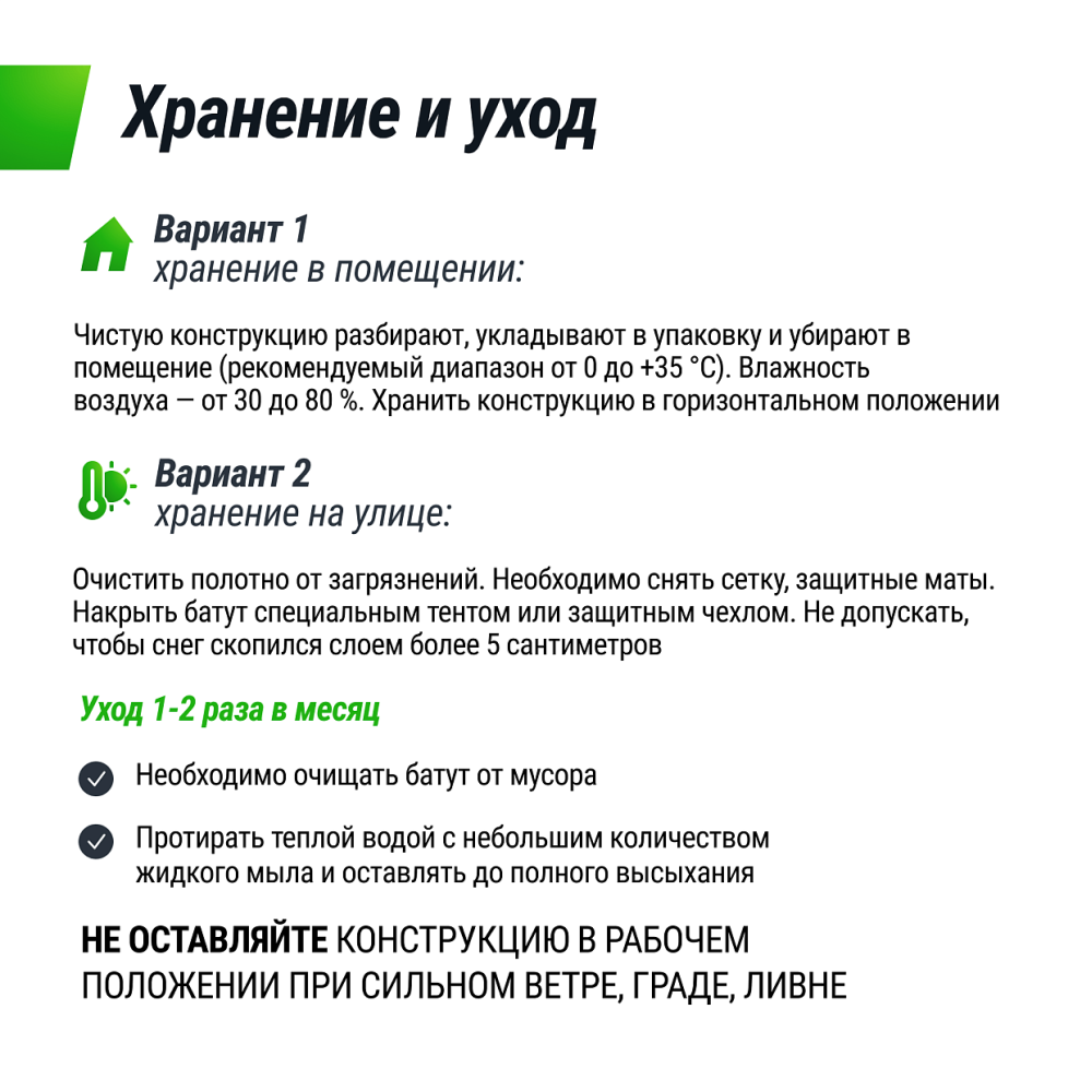 | Дополнительные фиксаторы, (колья) защита от ветра | не требуется |
