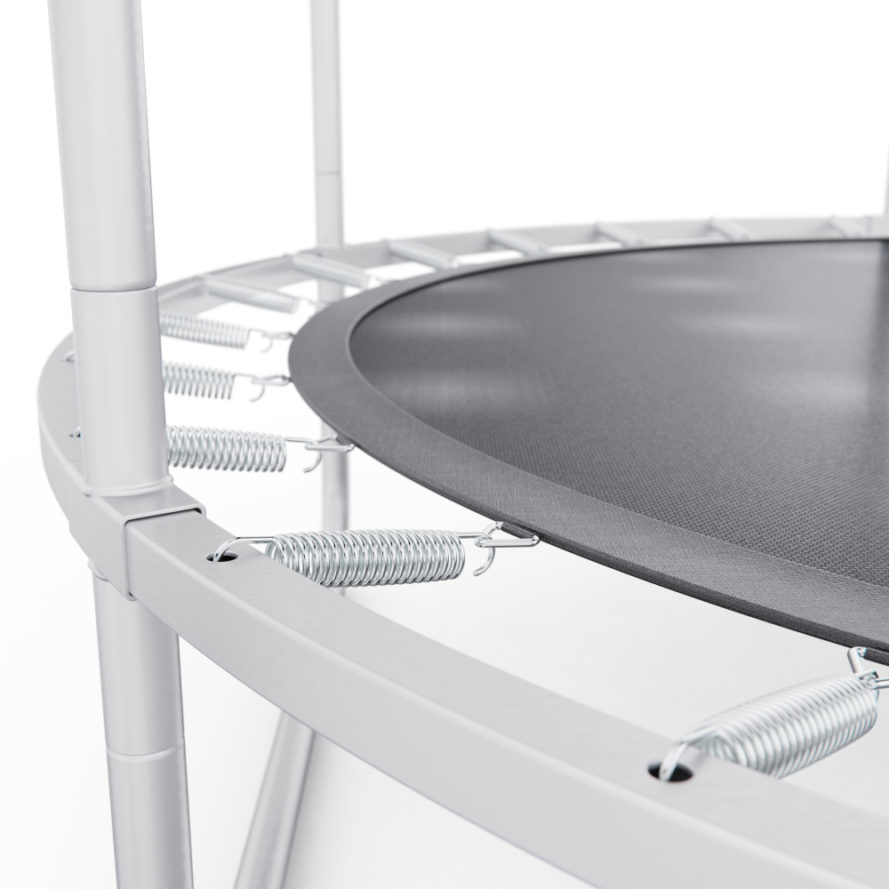 Батут каркасный DFC 54" CM-KT54 — отличное решение для домашних тренировок и активного образа жизни. Батут подходит для выполнения разнообразных упражнений — простых и динамичных прыжков, разведением рук и ног, поворотами тела, а также приседаний. Регулярные прыжки на батуте задействуют мышцы ног, ягодичные мышцы, мышцы кора, а также мышцы спины и рук, отвечающие за баланс и стабилизацию. Батут предназначен для использования в квартире или доме, подходит для взрослых и подростков и детей. Батут рассчитан на максимальную статическую нагрузку 120 кг. Основная рама из прочного металла диаметром 25 х 1,2 мм обеспечивает надежность конструкции и длительный срок службы. Шесть ножек 25 х 1,2 мм гарантируют устойчивость на любой поверхности. Диаметр батута составляет 137 см, что обеспечивает комфортное пространство для прыжков и упражнений. Прыжковое полотно выполнено из износостойкого полипропилена, устойчивого к регулярным нагрузкам. Упругость и равномерное распределение нагрузки обеспечивают 30 пружин, которые равномерно распределяют нагрузку и снижают ударное воздействие на суставы и связки. Батут оснащен прочной защитной сеткой из полиэтилена высотой 90 см и защитным матом из ткани Oxford, что обеспечивает дополнительную безопасность во время тренировок. Высота батута 30 см, что делает использование удобным и безопасным. Батут каркасный DFC 54" CM-KT54 — это отличный выбор, если вы ищете домашний батут с сеткой, батут для тренировок дома или надежный спортивный инвентарь для активного образа жизни. Гарантия на детали подверженные естественному износу в процессе эксплуатации — до 6 месяцев с момента установки тренажера при условии регулярного планового ТО. Важно: гарантия не распространяется на преждевременный износ из-за чрезмерной эксплуатации тренажера.