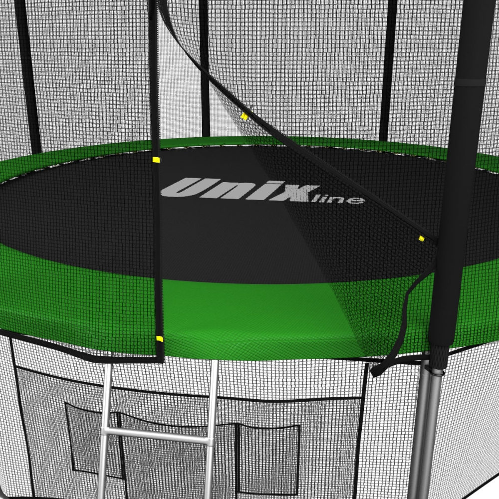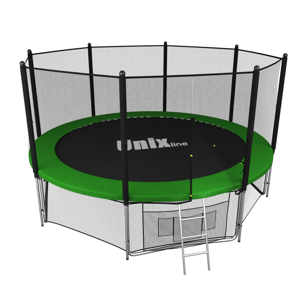 Батуты UNIX Line серии Classic разработаны для ежедневного использования детьми и взрослыми и соответствуют международным стандартам качества ISO 9001. Батут изготовлен из высокопрочной стали толщиной 1,5 мм с двойным слоем оцинкованного антикоррозийного покрытия. Рама соединяется между собой с помощью специального T-connector (2.4 мм), обеспечивая безопасность и надежность во время прыжковых игр. 88 пружин в конструкции каркасного батута обеспечивают отличный отскок, а также прочность и долговечность батута.. . Металлический каркас батутов выполнен из прочной гальванизированной стали, максимально допустимый вес пользователя 170 кг. Прыжковое полотно производится из специального высокопрочного материала Permatron, устойчивого к любым неблагоприятным воздействиям окружающей среды и механическим воздействиям. Permatron – эластичный материал, легко возвращающийся в исходное состояние при постоянном воздействии с разной нагрузкой. Он устойчив к внешним воздействиям: ультрафиолету, плесени, влаге, резким изменениям температуры. Термическая обработка делает эту ткань устойчивой к постоянным изгибам и стрессовым нагрузкам. Прыжковое полотно для батута, изготовленное из перматрона, подходит для применения дома и на улице. Этот материал не боится осадков и воздействия солнечных лучей, также обладает антисептическими свойствами. Защитный мат для пружин, расположенный по периметру батута, состоит из четырех слоев, обшитых ПВХ материалом, плотностью 130 г/см3 и надежно закрывает пружины.. . Батут оснащен высокой защитной сеткой высотой 180 см, которая обеспечивает максимальную безопасность при прыжках. Она предотвращает падения и травмы, а также защищает детей от попадания на батут животных или других предметов. Батут UNIX Line – это отличный выбор для родителей, которые хотят обеспечить своим детям безопасные и интересные занятия на свежем воздухе. Он поможет развить физические способности детей, а также принесет много радости и удовольствия всей семье. Внешняя защитная сетка предоставляет больше пространства для прыжков. Защитная сетка расположена по периметру рамы батута. Сетка изготовлена из качественного и эластичного материала Polyethylene, который более устойчив к воздействию влаги и УФ-излучения. . . Каркасный батут с защитной сеткой безопасный подойдет для тренировок и просто для развлечений, он оснащен двусторонней молнией и дополнительными пластиковыми фиксаторами. Прыжки на батуте — это отличная аэробная нагрузка: улучшения общей физической формы, заряд положительными эмоциями, улучшение работы кардио системы, развитие чувства равновесия и координации, подойдет для пользователей любого возраста. Занятия на свежем воздухе укрепляют иммунитет, повышают выносливость. . . Помимо верхней защитной сетки, все батуты модельного ряда UNIX Line Classic оборудованы нижней защитной сеткой, которая препятствует проникновению под прыжковое полотно батута детей, животных, а так же попаданию посторонних предметов, и лестницей для удобства пользования. А в моделях диаметром от 10FT (305см.), в комплект входят специальные крепления батута к земле (колышки).. Главным приоритетом компания ставит безопасность детей, поэтому наши батуты изготовлены в соответствии со всеми требованиями из высококачественных материалов. Батут способствует развитию координации движени