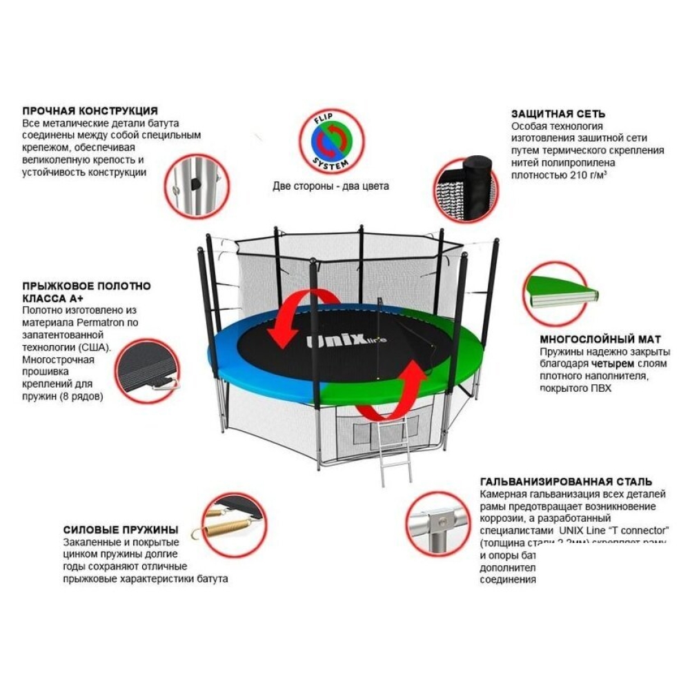 Технические характеристики Батут Unix Line Classic 14ft inside (синий/зеленый)
