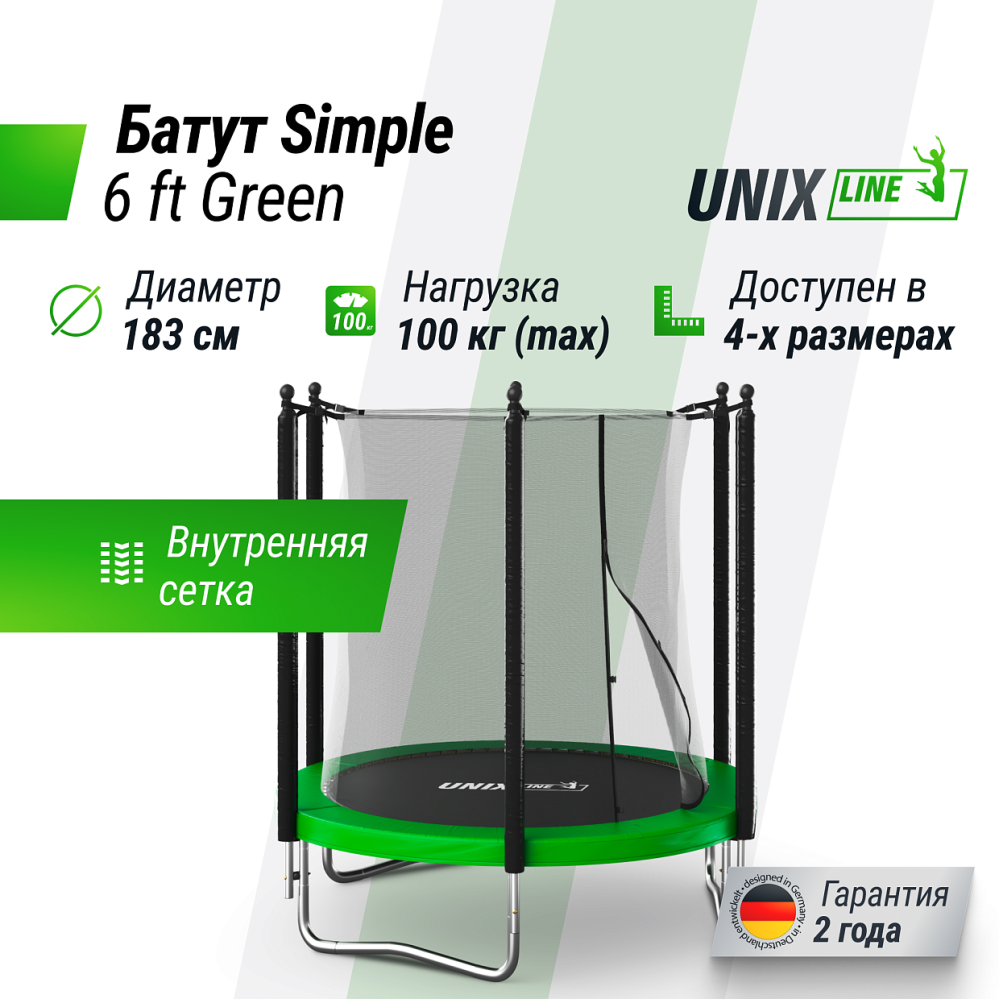 Технические характеристики Батут UNIX Line Simple 6 ft Green (inside)
