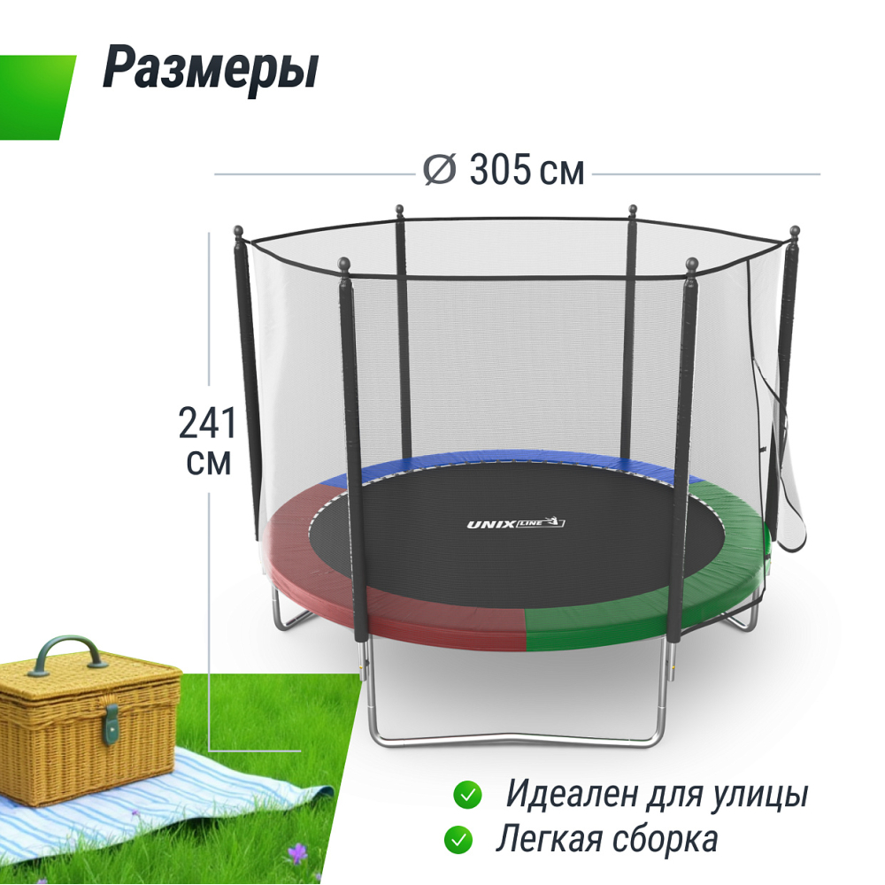 Технические характеристики Батут UNIX Line Simple 8 ft Color (outside)