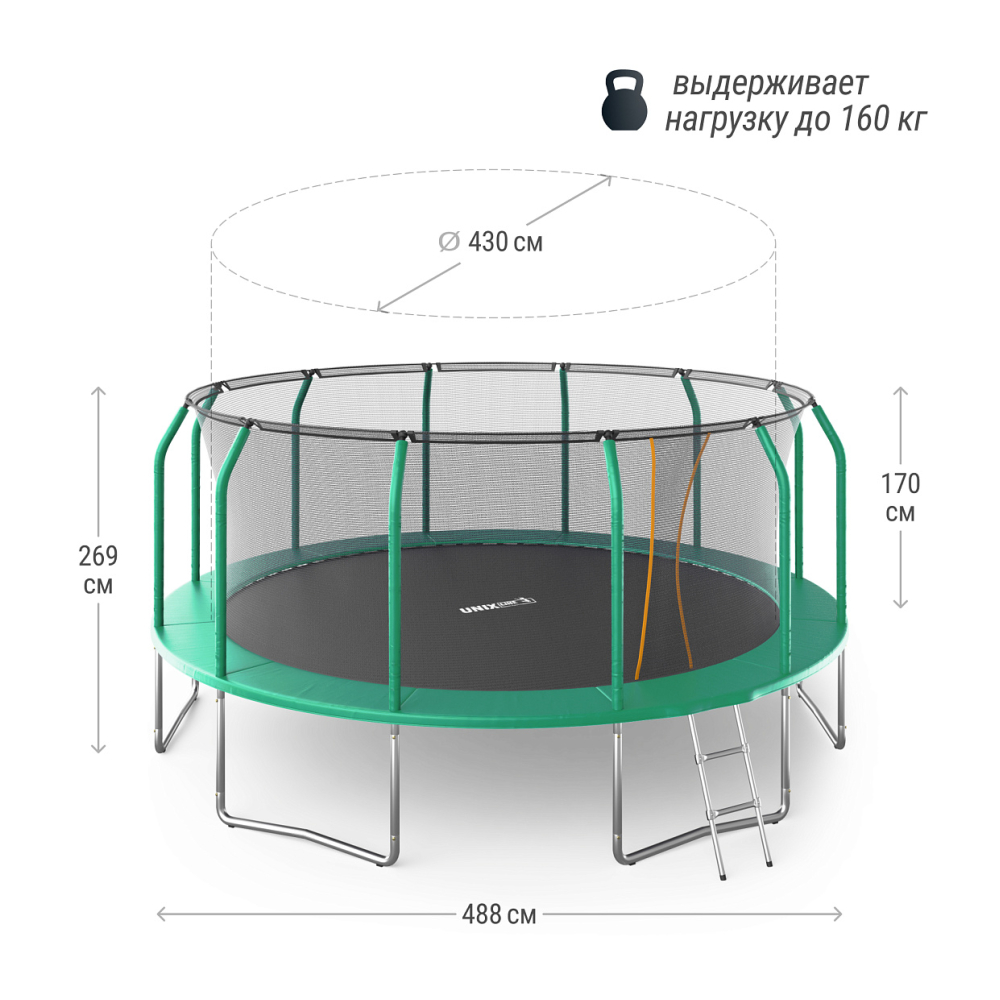 Технические характеристики Батут UNIX Line SUPREME BASIC 16 ft (Green)