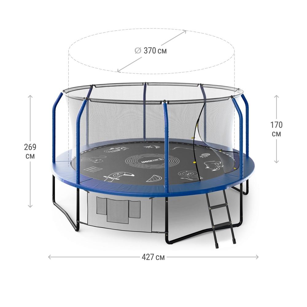 Технические характеристики Батут UNIX Line SUPREME GAME 14 ft (Blue)