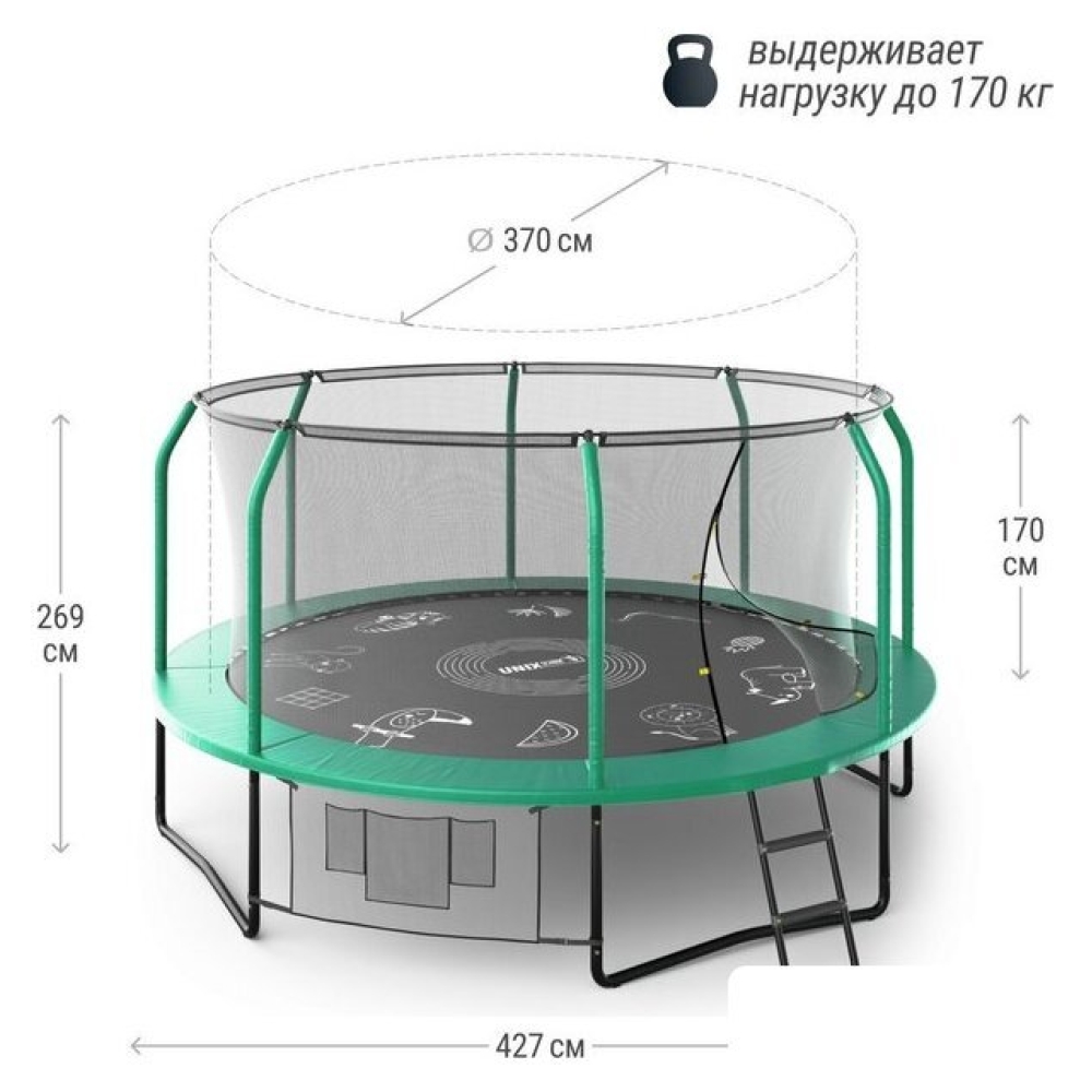 Технические характеристики Батут Unix Line Supreme Game 14ft (зеленый)