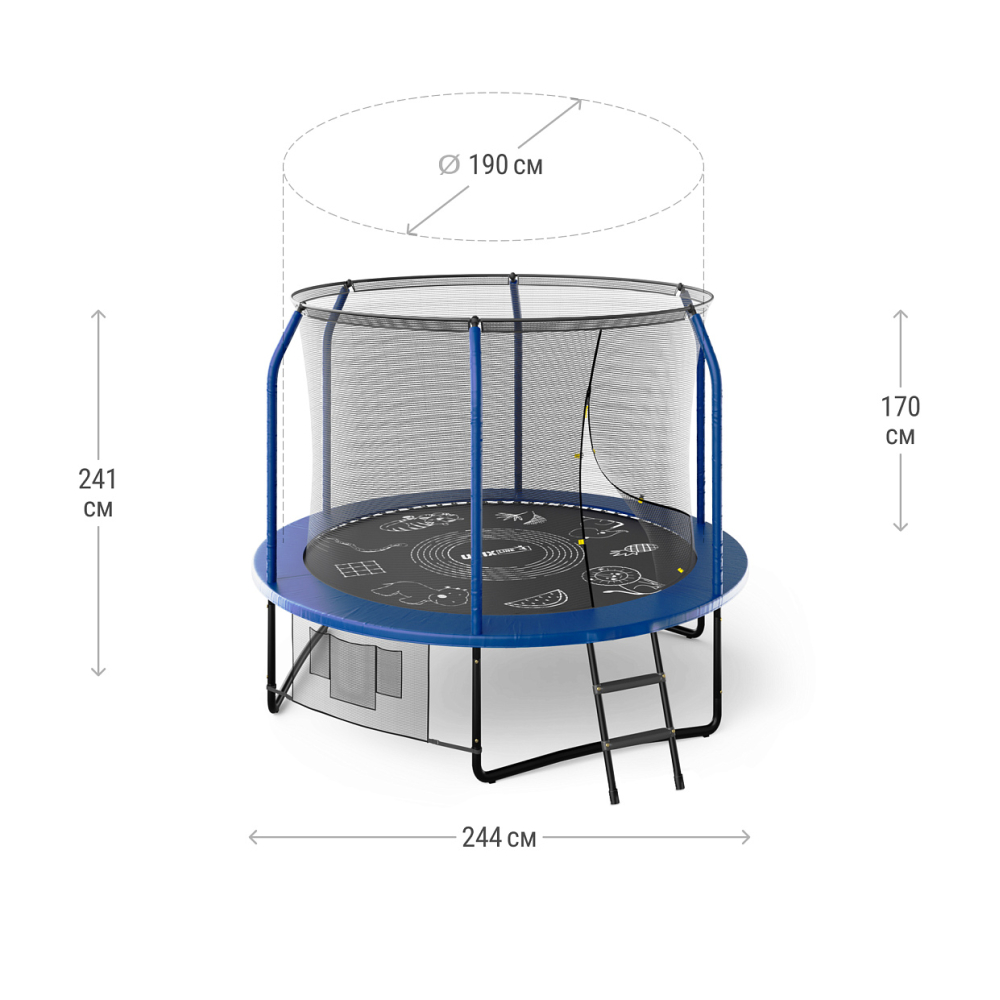 Технические характеристики Батут UNIX Line SUPREME GAME 8 ft (Blue)