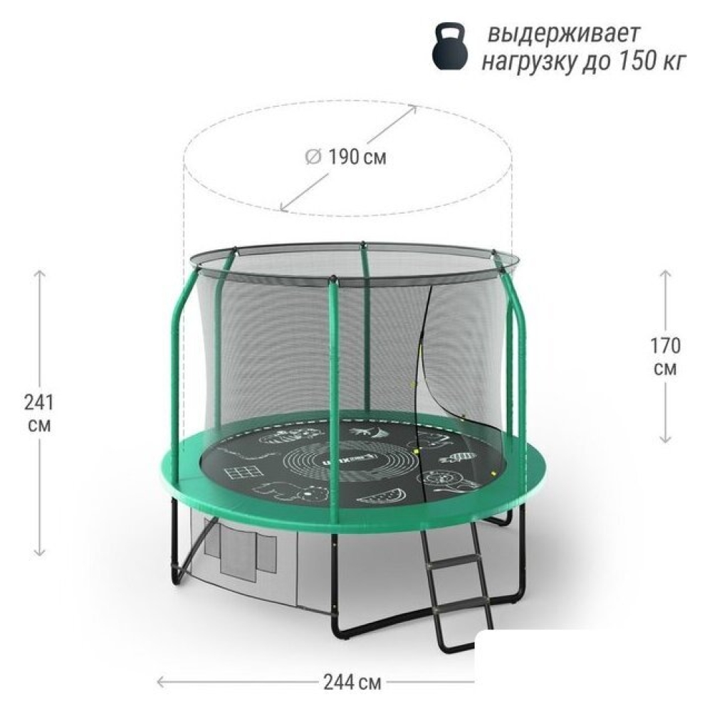 Технические характеристики Батут Unix Line Supreme Game 8ft (зеленый)