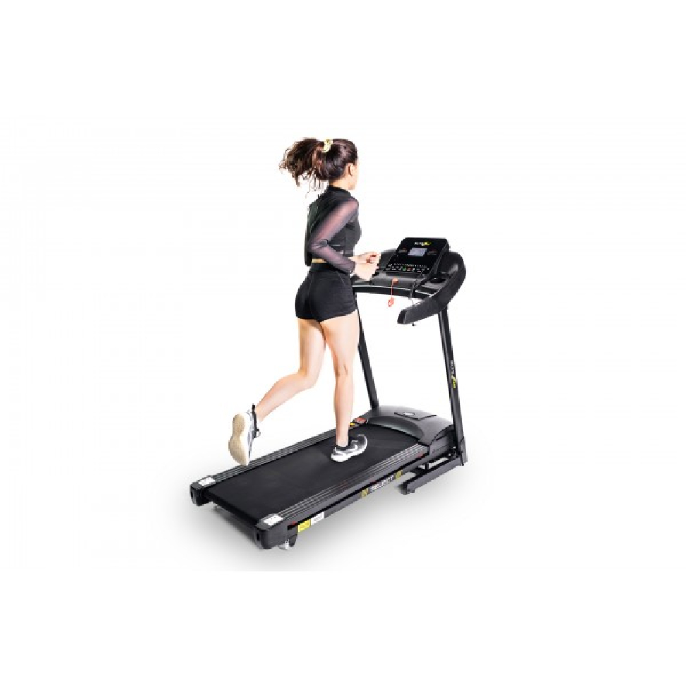 Для безопасности пользователей на беговой дорожке установлена гидравлическая система Softdrop, которая способствует легкому складыванию оборудования, что позволяет существенно сэкономить место занимаемое тренажером.