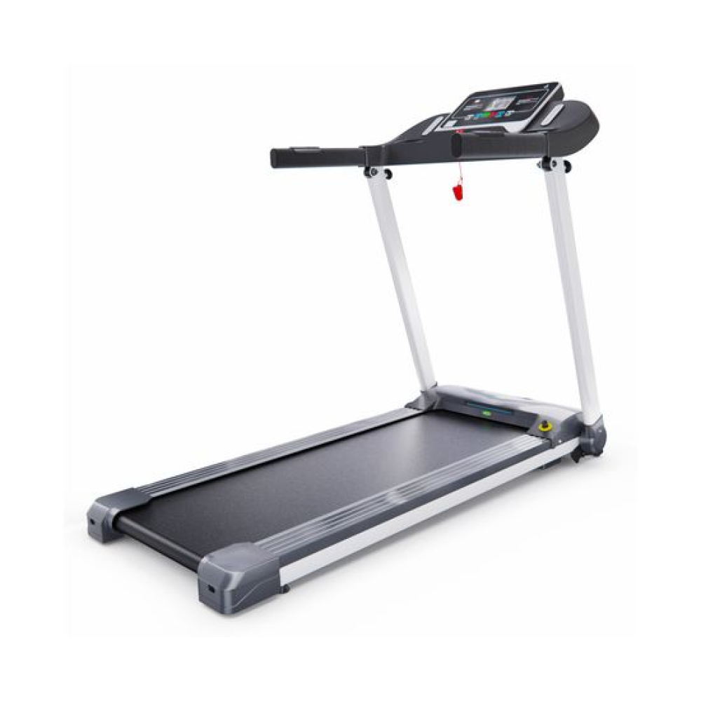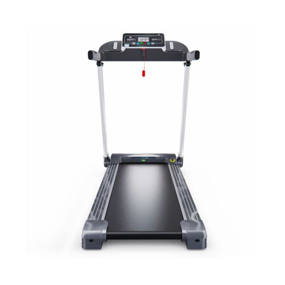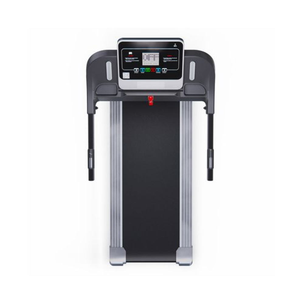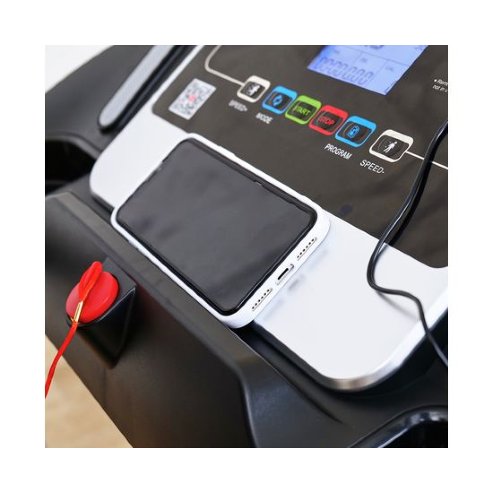 Беговая дорожка DFC T-X510 — отличный выбор для занятий спортом дома. Она оснащена электрическим двигателем с пиковой мощностью 3 л.с., который позволяет развивать скорость от 1 до 12 км/ч. Беговое полотно имеет размеры 121 х 41 см (в развёрнутом виде — 252 х 41 см), что обеспечивает комфорт во время тренировки. Амортизационная система состоит из 6 амортизаторов, которые снижают нагрузку на суставы и позвоночник.Для удобства пользователей предусмотрены сенсорные датчики пульса на поручнях, транспортировочные ролики и компенсаторы неровности пола. Монохромный LCD-дисплей размером 4 дюйма отображает время, скорость, дистанцию, калории и пульс. В дорожке есть MP3-вход и 12 встроенных программ, а также поддержка приложения SPAX с помощью Bluetooth-соединения.Максимальный вес пользователя составляет 120 кг, что делает эту модель подходящей для большинства людей. Дорожка легко складывается, что облегчает её хранение. В комплекте идут держатель для планшета и бутылки.