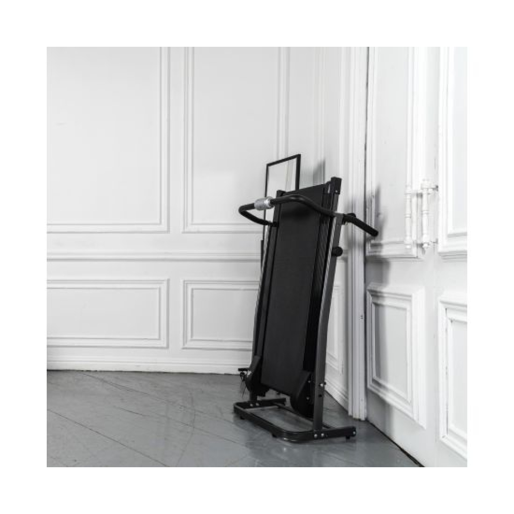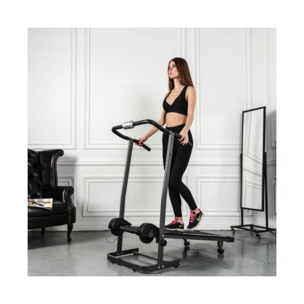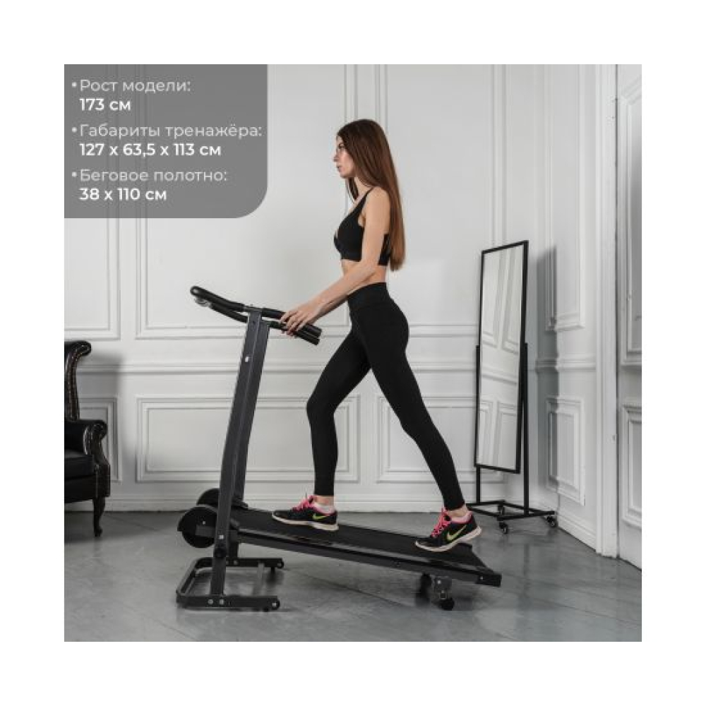 Механическая беговая дорожка предназначена для домашнего использования.Угол наклонаРучная регулировка угла наклона бегового полотна в 3-х положениях от 8 до 12° с помощью ручки. Для первой тренировки мы рекомендуем выбирать минимальный угол наклона, чтобы привыкнуть к дорожке.КонсольИнтуитивно понятная консоль показывает: время, расстояние, калории, скорость, сканирование.КомпактностьСкладная конструкция дорожки поможет сэкономить место в комнате после тренировки.
