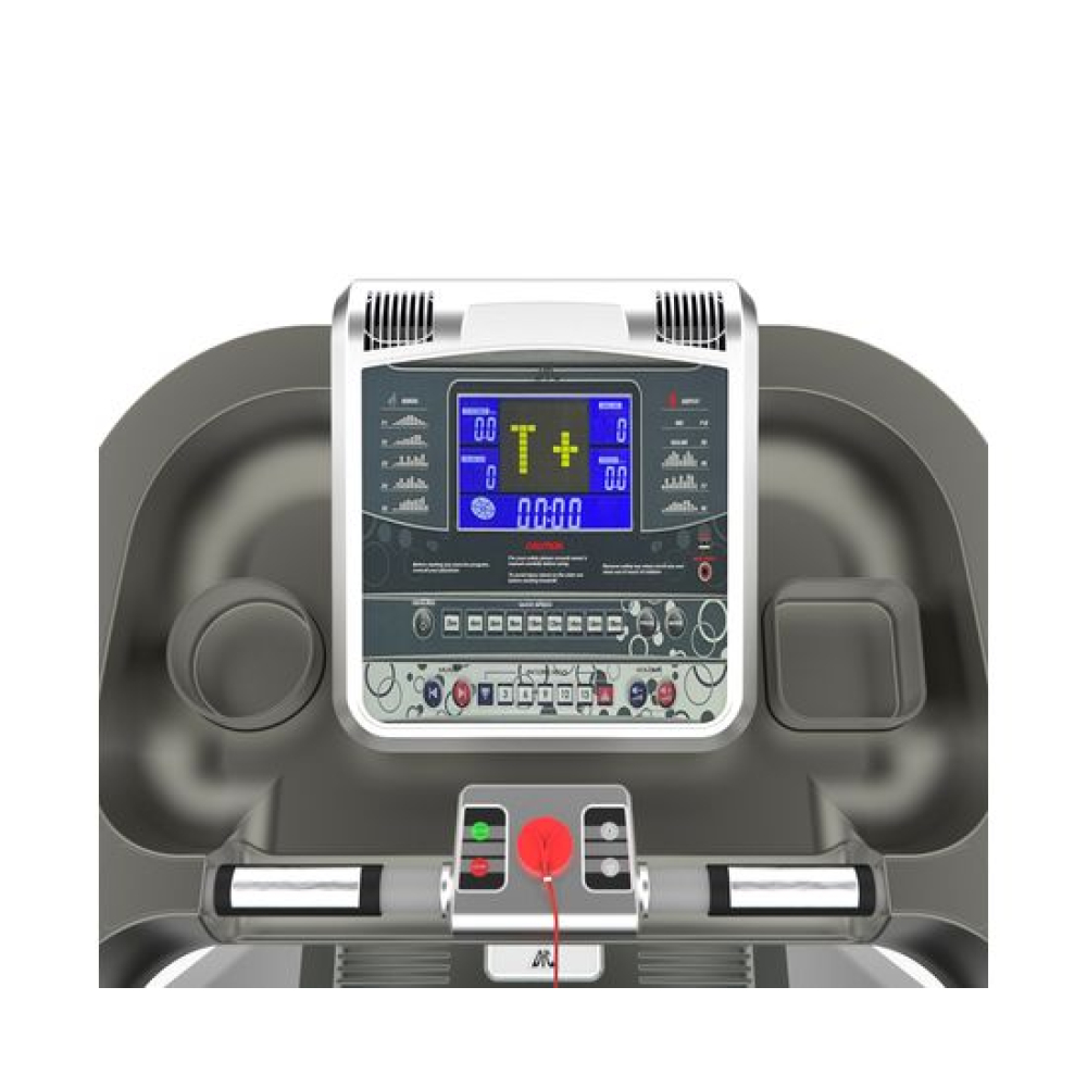 Электрическая беговая дорожка DFC TIGER PRO - улучшенная версия TIGER, отличающаяся более мощным двигателем переменного тока, толщиной полотна и максимальным весом пользователя. Дорожка предназначена для коммерческого использованияДвигатель переменного тока мощностью 6 лошадиных сил способен разогнать дорожку от 0,3 до 20 км/ч. Скорость регулируется электронно с консоли с помощью кнопок быстрого запуска, либо постепенно увеличивается с шагом 0,1 км/ч с помощью клавиш около сенсорных датчиков пульса.Наклон тренажёра от 0 до 15° регулируется электронно с консоли. Вы можете выставить желаемый наклон с помощью кнопок быстрого изменения, либо постепенно прибавить или убавить градусы с помощью клавиш.Очень большое беговое полотно размерами 60 х 161 см и толщиной 3 мм, предоставит пользователю максимум комфорта и простора во время бега или ходьбы. Толщина деки 25 мм, дорожка выдерживает пользователей весом до 200 кг. Подойдёт для пользователей ростом до 210 см.7' ЖК-дисплей отображает: Время, скорость, дистанцию, калории, пульс, угол наклона. 8 программ тренировки. В функционал входят разъемы MP3 и USB, 2 высококачественных динамика для прослушивания музыки или просмотра фильмов и сериалов. Для удобства на консоли расположены кнопки переключения музыки и регулировки звука. С помощью USB-входа пользователь сможет не только подключиться к дорожке для проигрывания медиа-файлов, но и зарядить свой гаджет.На панели есть 2 кармана для бутылки традиционной круглой и квадратной формы - для нестандартной формы ёмкостей, а также подставка под планшет. Сенсорные датчики пульса располагаются прямо под консолью, что упростит переключение программ или скорости во время замера вашего сердечного ритма. Транспортировочные ролики для быстрого перемещения по комнате.