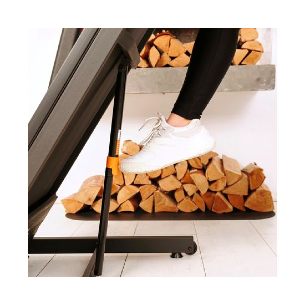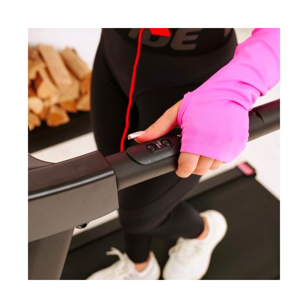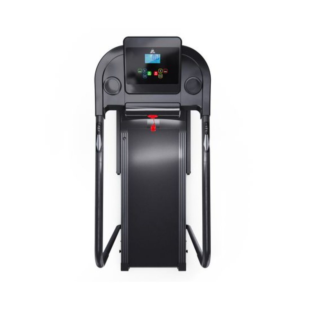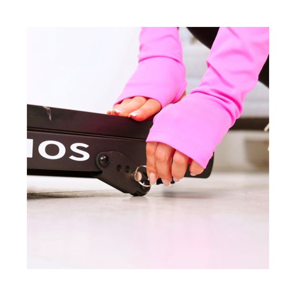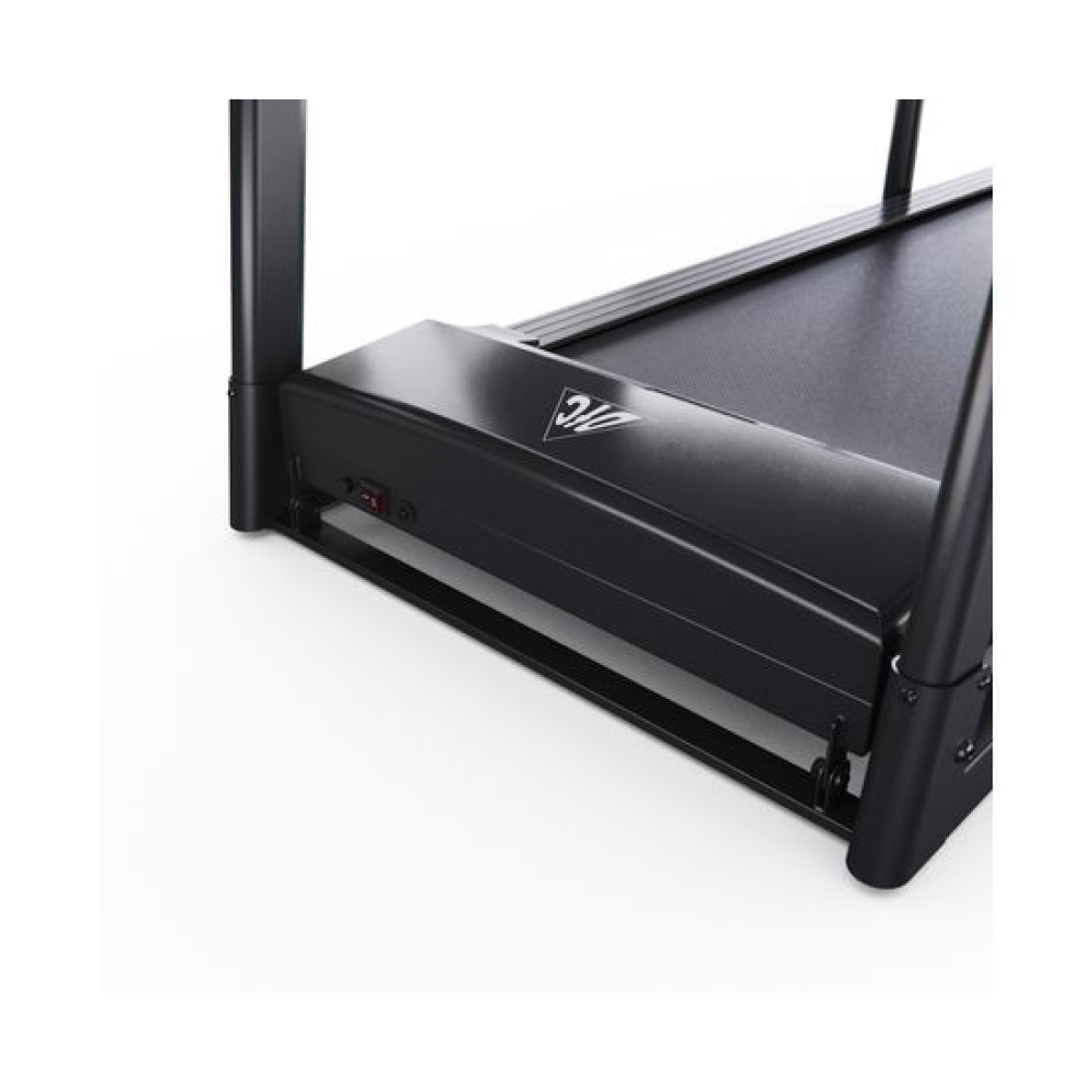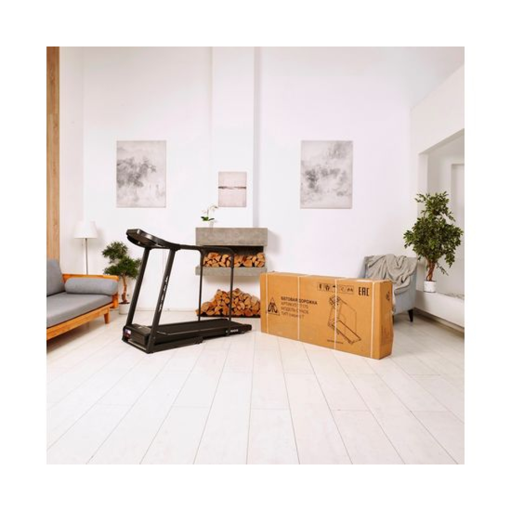 CYNOS — электрическая беговая дорожка чёрного цвета для домашнего применения и использования в спортивных и реабилитационных целях. Модель отличается присутствием в комплектации специальных удлинённых поручней для реабилитационных занятий, возможностью регулировки наклона бегового полотна в трёх положениях.Универсальное применениеЭта модель беговой дорожки универсальна. Может использоваться для частных тренировок в домашних условиях при различных нагрузках. Входящие в комплект поручни превращают её в эффективный тренажёр для реабилитации после перенесённых заболеваний и операций на опорно-двигательном аппарате. Для обоих случаев предусмотрены подходящие программы тренировок.Удобство занятийДля максимального комфорта во время тренировок предусмотрены подставка для планшета, две ниши для стаканов или бутылки с водой. На поручнях расположены кнопки регулировки скорости, а также датчики пульса. Имеется 12 встроенных программ тренировок, а также возможность вручную отрегулировать угол наклона в 3-х положениях. Дорожка развивает скорость до 12 километров в час. Шаг изменения скорости беговой дорожки 0,1 км/ч. Предназначена для людей, чей вес не превышает 120 кг.Компактное хранениеБеговая дорожка CYNOS имеет складную конструкцию. В сложенном виде она занимает минимум места, что удобно для небольших квартир. Есть два варианта хранения: с поручнями или без них. Первый подходит, если нужно регулярное использование дорожки. Во втором случае поручни снимаются для более длительного и компактного хранения (например, в кладовой). Транспортировочные ролики позволяют легко перемещать её при необходимости.
