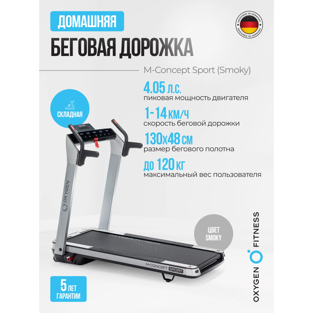 Технические характеристики Беговая дорожка домашняя OXYGEN FITNESS M-CONCEPT SPORT (SMOKY)