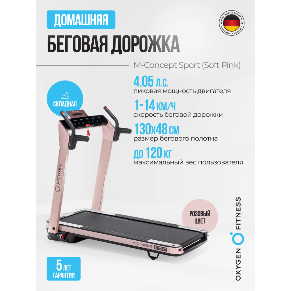 Технические характеристики Беговая дорожка домашняя OXYGEN FITNESS M-CONCEPT SPORT (SOFT PINK)