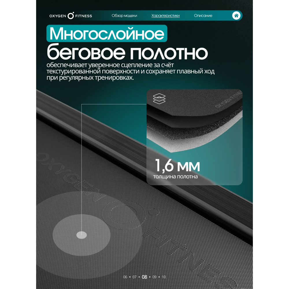 Технические характеристики Беговая дорожка домашняя OXYGEN FITNESS STRIDE (черный)