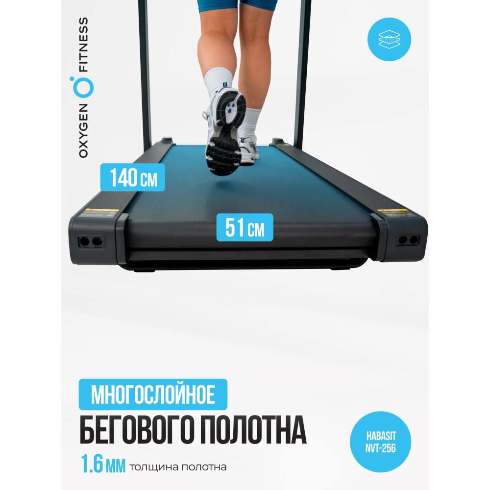 Беговое полотно толщиной 1.6 мм состоит из многослойного коммерческого материала. Размер которого составляет 140*51 см, предоставляя достаточно пространства для комфортного бега или ходьбы. А главным преимуществом является то, что беговая дорожка