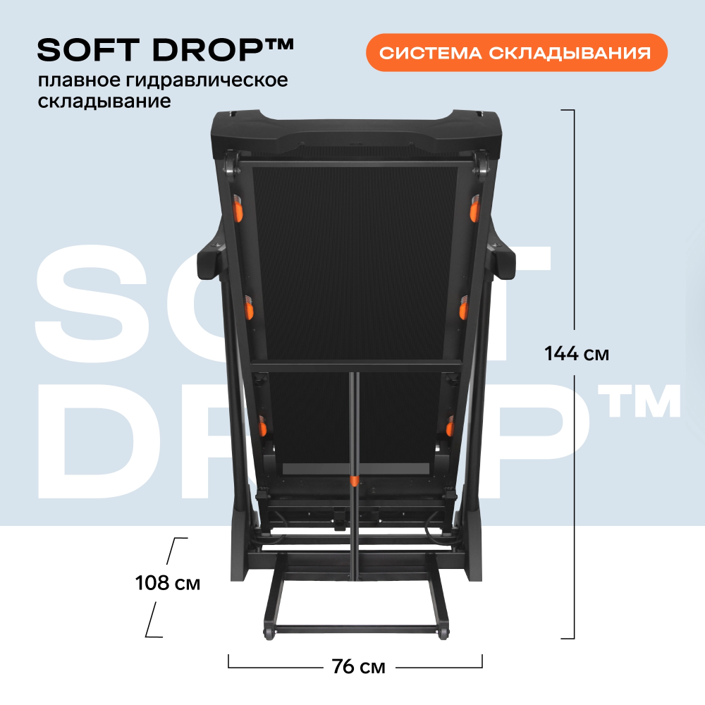 | Дополнительные особенности тренажера | гидравлическое складывание SOFT-DROP™; мультимедийная комплектонента, мобильное приложение FITSHOW |