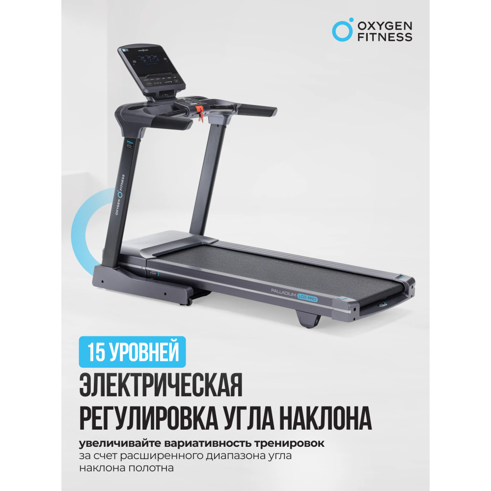 Представляем вашему вниманию беговую дорожку OXYGEN FITNESS PALLADIUM LCD PRO — идеальный выбор для тех, кто стремится к высшему уровню в тренировках, будь то дома или в небольших клубах, отелях или реабилитационных центрах. Эта модель воплощает в себе передовые технологии и высокое качество, предлагая пользователям превосходные условия для эффективных и комфортных тренировок.