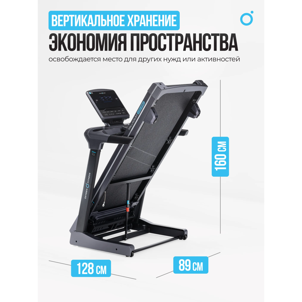 Складная конструкция с двухфазной гидравлической системой easyFOLD™ делает хранение дорожки максимально удобным. В сложенном виде она занимает всего 128 см в длину, 89 см в ширину и 160 см в высоту, что позволит вам экономить пространство, не жертвуя качеством тренировок.